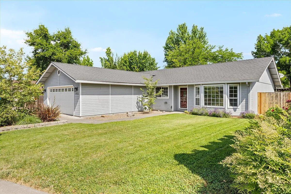 Welcome to 3073 Ruby Drive-an updated, move-in ready home in one of East Medford's most desirable neighborhoods, steps from Lone Pine Elementary. The main home offers 1,550 sq ft of living space, while a fully finished 194 sq ft detached studio provides an ideal retreat for an office, studio, or hobby space. Inside, the bright, open layout features vaulted ceilings and a remodeled kitchen with custom cabinets, granite counters, a farmhouse sink, and tile backsplash. The primary suite boasts an updated bathroom with a walk-in tile shower, modern vanity, and fixtures. Additional upgrades include LVP flooring, custom built-ins, smart home features, and recessed lighting. Enjoy a private backyard oasis with mature landscaping, a paver patio, raised garden beds, and various fruit trees and bushes. The studio is insulated with heating/AC, cathedral ceilings, recessed lighting, and French doors. RV parking, two-car garage with storage, and automatic sprinklers complete this East Medford gem!