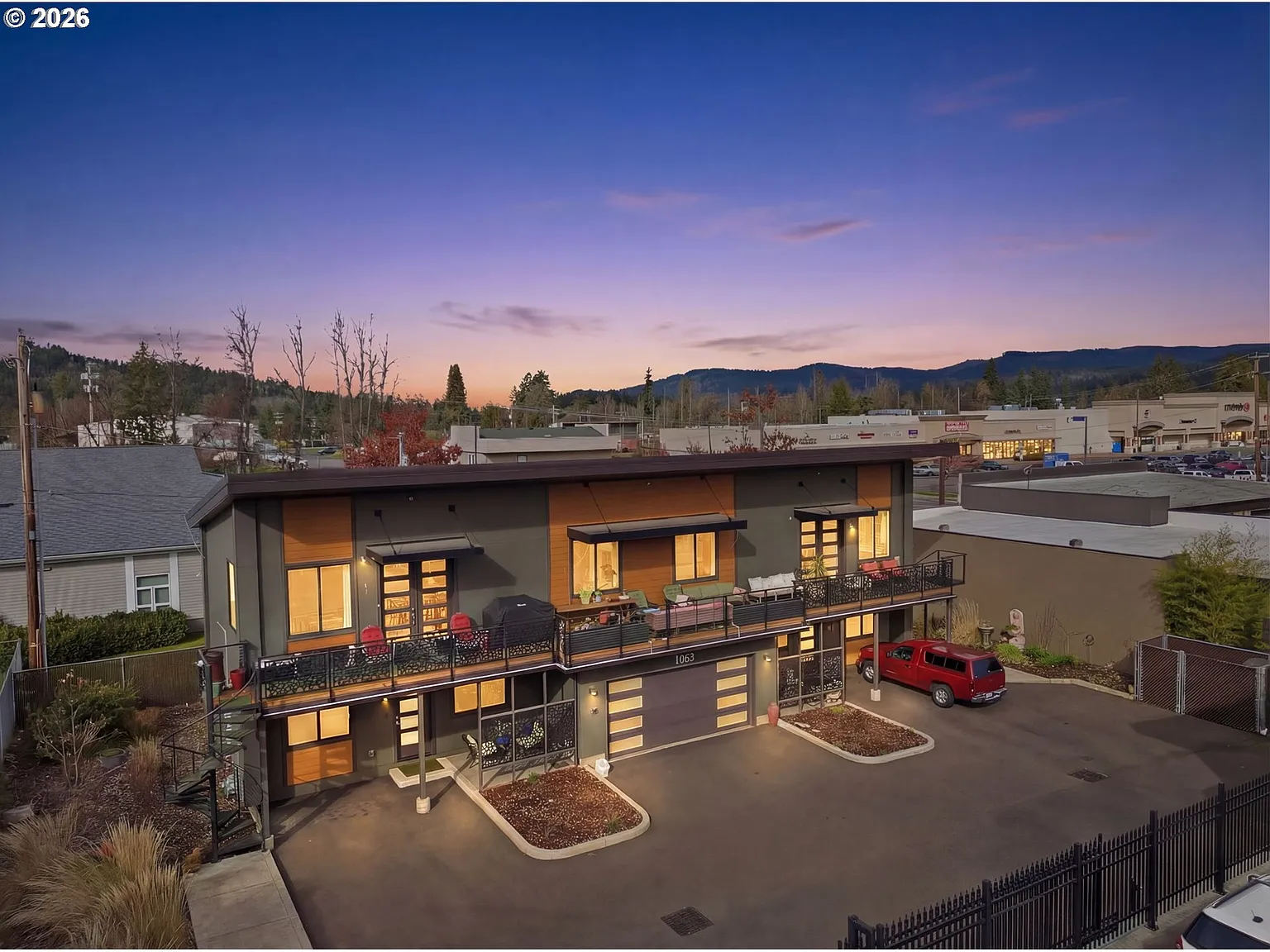 Exceptional Mixed-Use Investment Opportunity in the Heart of Cottage Grove! Built by JDL Construction in late 2020, this nearly new development includes a fully rented triplex and a separate commercial building, offering immediate income, long-term stability, and strong investment potential. The triplex features two 575 sq ft 1 bed / 1 bath apartments on the ground level, each equipped with stainless steel appliances and stackable washer/dryers. Above is a stunning 1,704 sq ft penthouse accessed by a private elevator inside the attached two-car garage. This luxurious residence offers 2 bedrooms, 2 bathrooms, an office, indoor laundry, and a large walk-in closet. The chef’s kitchen includes two refrigerators, stainless appliances, gas range, quartz countertops, and custom cabinetry. Additional highlights include wide-plank oak flooring, heated tile floors, custom lighting, on-demand hot water, and large picture windows overlooking Coiner Park. The Trex front deck with decorative wrought iron railing spans the length of the penthouse and is accessible through French doors from the primary suite and living room. The separate 1,700 sq ft commercial building is leased with 8 years remaining, providing stable, long-term income. It features ADA compliance, off-street parking, bay door access, ductless HVAC, two bathrooms, conference room, storage room, and front lobby. An electronic wrought iron gate separates the residential and commercial spaces. With existing tenants and strong rental demand, this property offers excellent income potential and future CAP rate upside. Live in the penthouse while generating rental income, or maintain it as a fully functioning investment property. Additional benefit: transferable tax deferral with approximately 4 years remaining, resulting in property taxes of only $756 per year. Prime location, just minutes to I-5 and historic downtown district. A rare opportunity to own one of the best commercial lots on Main Street with built-in income!