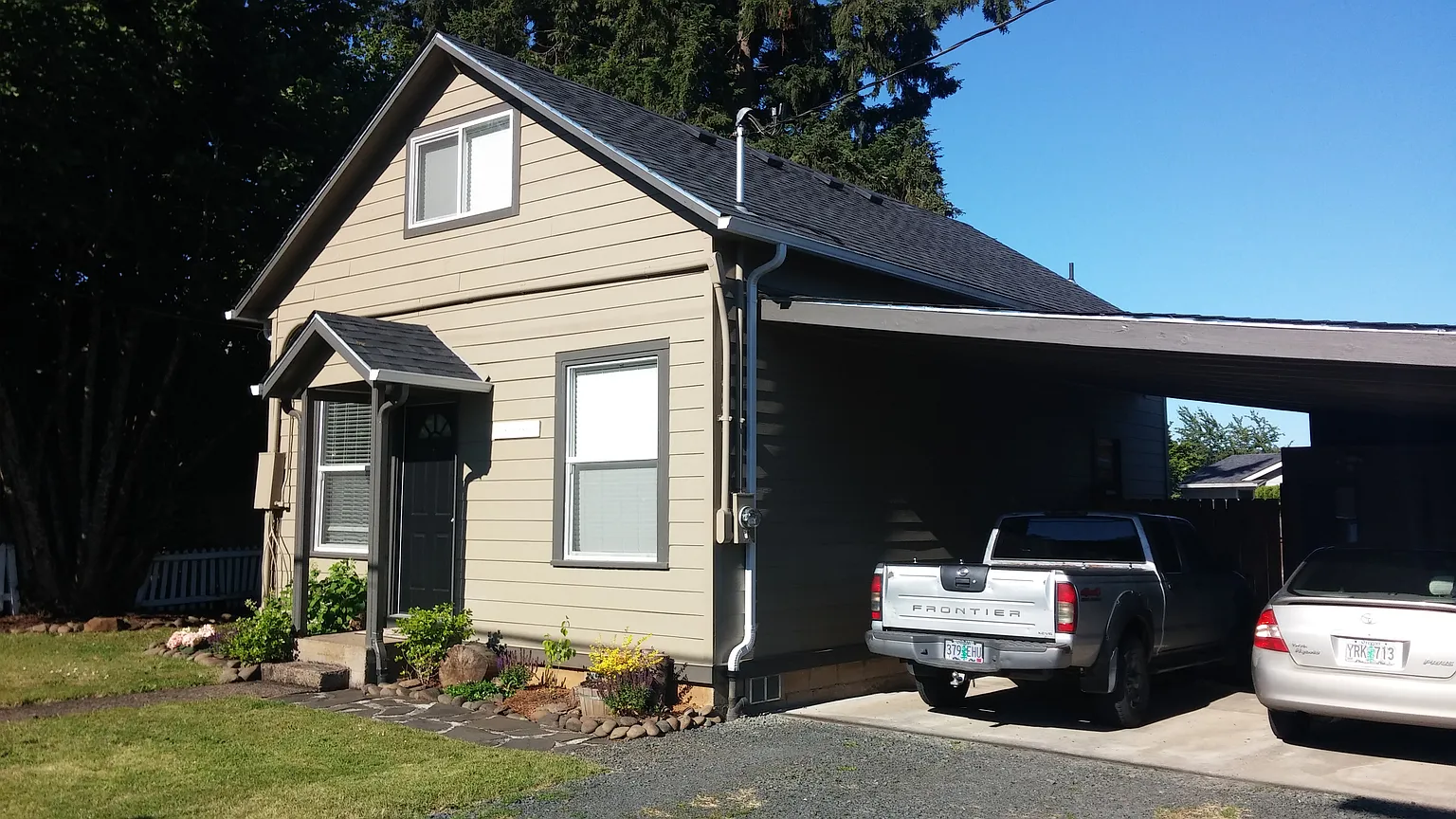 Tastefully updated & well maintained 3 bed, 1.5 bath home.Newer roof,siding,paint,vinyl windows &blinds, light fixtures, interior doors and flooring! Upstairs half bath between two bedrooms with ample storage space. Main bed &bath on first floor.Mudroom outside kitchen w utility area&exterior access. Shop space & small storage shed.Attached 2 car carport.Fully fenced backyard,large garden area,blueberries &plum tree. Possible RV parking