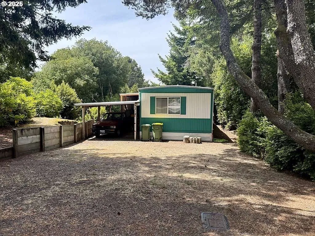 Located in the highly sought-after Greentrees Village, a gated 55+ active community. This charming 2-bedroom 1.5 bath home offers comfort, convenience and a host of thoughtful upgrades including a new water heater in 2023, a AO Smith whole home water filtration system, carpet, countertops, and a stylish vessel washbowl in the main bath. Enjoy the ease a walk-in shower with updated features, efficient heating and cooling with a ductless heat pump, and a sunny south facing porch that's wind protected with a peaceful side yard.. Just minutes from historic old town, beaches, fishing, hiking and biking trails, golf, lakes, rivers, and the Oregon Dunes Recreation Area. This well maintained home is perfectly positioned for the coastal lifestyle you've been waiting for.