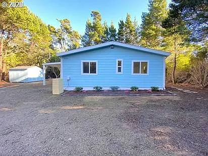 Beautiful 2 bdrm, 1.5 bth manufactured home covering 974 SqFt on a private 0.44 acre lot. This home has new vinyl windows, siding, waterproof vinyl plank flooring, carpet, stainless steel appliances, custom counters, crown moulding, custom doors, vanities, etc. An open concept and vaulted ceilings with lots of natural light. The exterior has ample storage, new deck, fun firepit, carport with a gorgeous cedar plank ceiling, and 1000 cubic ft shed. Zero HOA fees and plenty of room to park your RV.