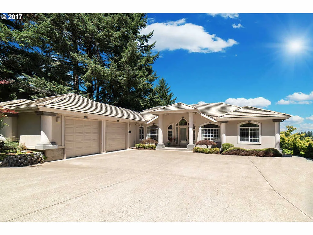 Elegant home, City Views to the North, view windows & view deck. From the front door you can see for 20 miles.Level access to home with all the living on main level. Lower level has XL 25x20 family room, controlled humidity wine cellar, half bath, extra storage space & 2 water heaters. Wired for surround sound thru-out. Garage is os, finished with sloping "step" down, for handicapped. There's a Private hot tub area.