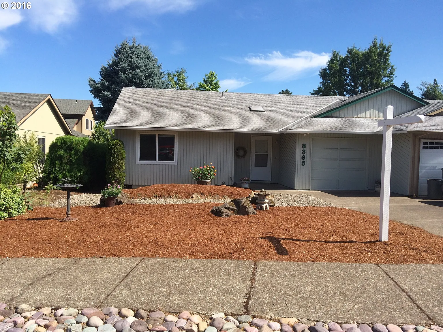 Ready to move in! One level, 2 Roomy bedrooms (Master has walk-in closet); one full bath & 1 powder bath. Open plan with 180 extra sq ft added in 1992. Newer Gas furnace, water heater, gutters, range and micro. Bamboo floors, Tile floors in kitchen & baths & new carpet in BRs. New 26x9 cedar deck . Fenced yard, single attached garage. NO monthly HOA fees...On cul-de-sac near Tigard Library.