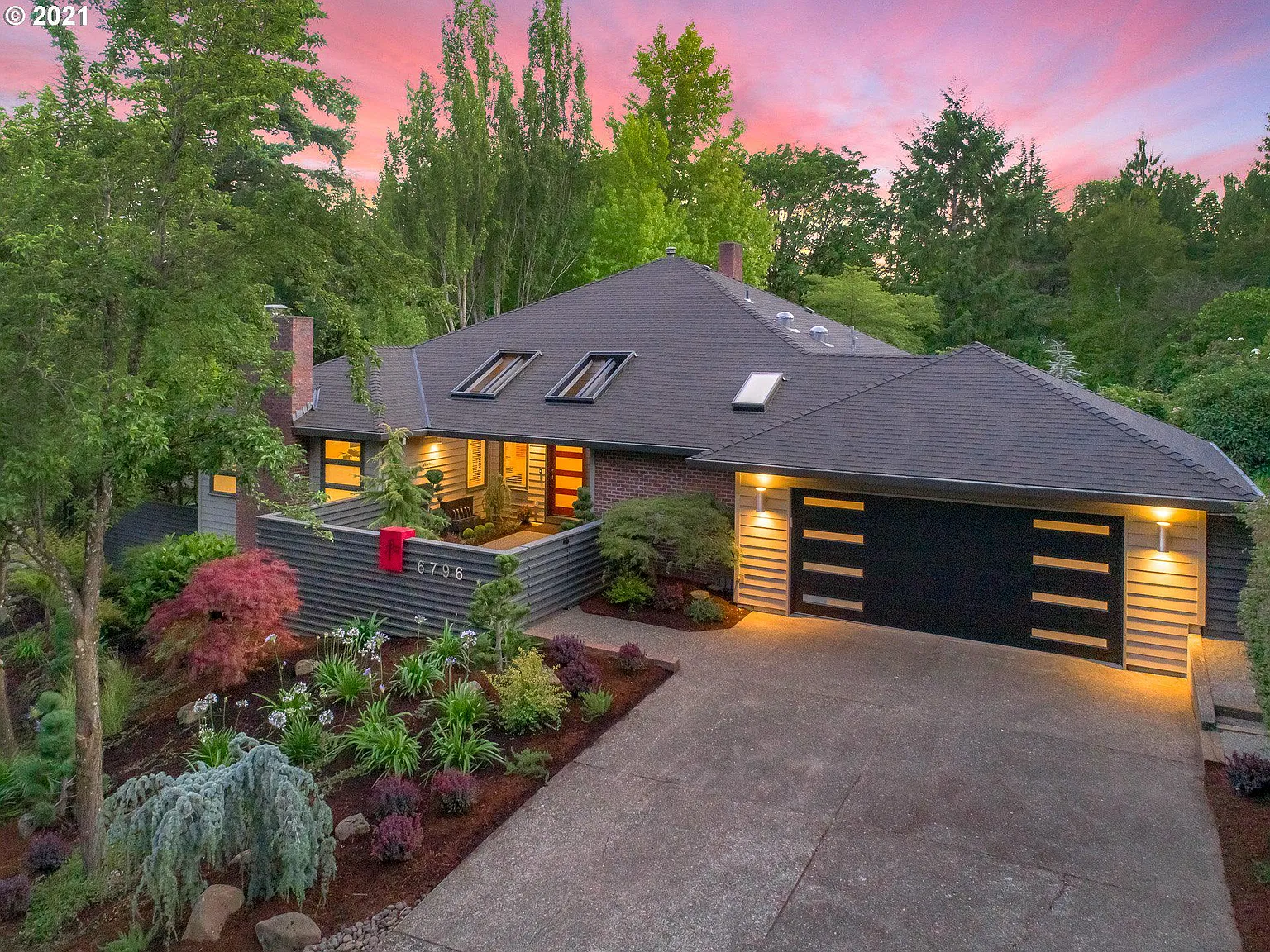 Absolutely Stunning Northwest Contemporary SHOWPLACE features Captivating Main Level Living with Fabulous Gated Courtyard & Great Open Floor Plan! High Ceilings. Skylights. State of the Art Center Island Kitchen w/ Huge 8 person Breakfast Bar. 2 Family Rooms. Deluxe Primary Bedroom Suite w/ 2 Baths & 2 Walk-In Closets. A true 3,798 sq ft Entertainer's Oasis on very Private Lushly Landscaped 4/10th Acre Grounds w/ Grassy Yard on Quiet Cul-De-Sac in Prime SW Portland Hills Location.