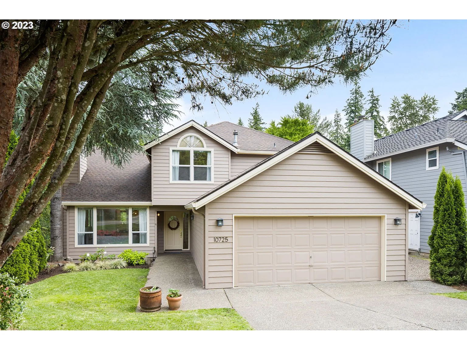 Murrayhill living at it's finest with a light and bright tri-level home located on a peaceful cul-de-sac! The open floor design lives LARGE featuring oversized windows, vaulted ceilings, arches, AND skylight. There is room for everyone with a primary suite on the main, oversized family room, breakfast nook, vaulted living + dining, PLUS lower versatile den + bonus w/ exterior entrance (perfect for guest room, art or fitness studio, office, play room, etc). Multiple updates include high efficiency furnace, built-in bookshelf, LVP flooring, interior trim, custom arches, NEW Maytag dishwasher, butcher block kitchen countertops, farmhouse sink, painted kitchen cabinets w/ modern hardware, full-height tile kitchen backsplash, NEW exterior paint, and MORE! Fall in love with the outdoor oasis complete with composite deck, concrete patio, terraced garden, built-in slide, and lawn with sprinkler system. STELLAR LOCATION - Murrayhill neighborhood features multiple paved pathways, hiking + biking trails, THPRD greenway, clubhouse, lap + recreation pool, hot tub, meeting/party room, and sport courts. Murrayhill marketplace + town center nearby feat multiple restaurants, grocery store, local conveniences, public library, and more! All appliances included, except garage refrigerator. HOA $448 annually.