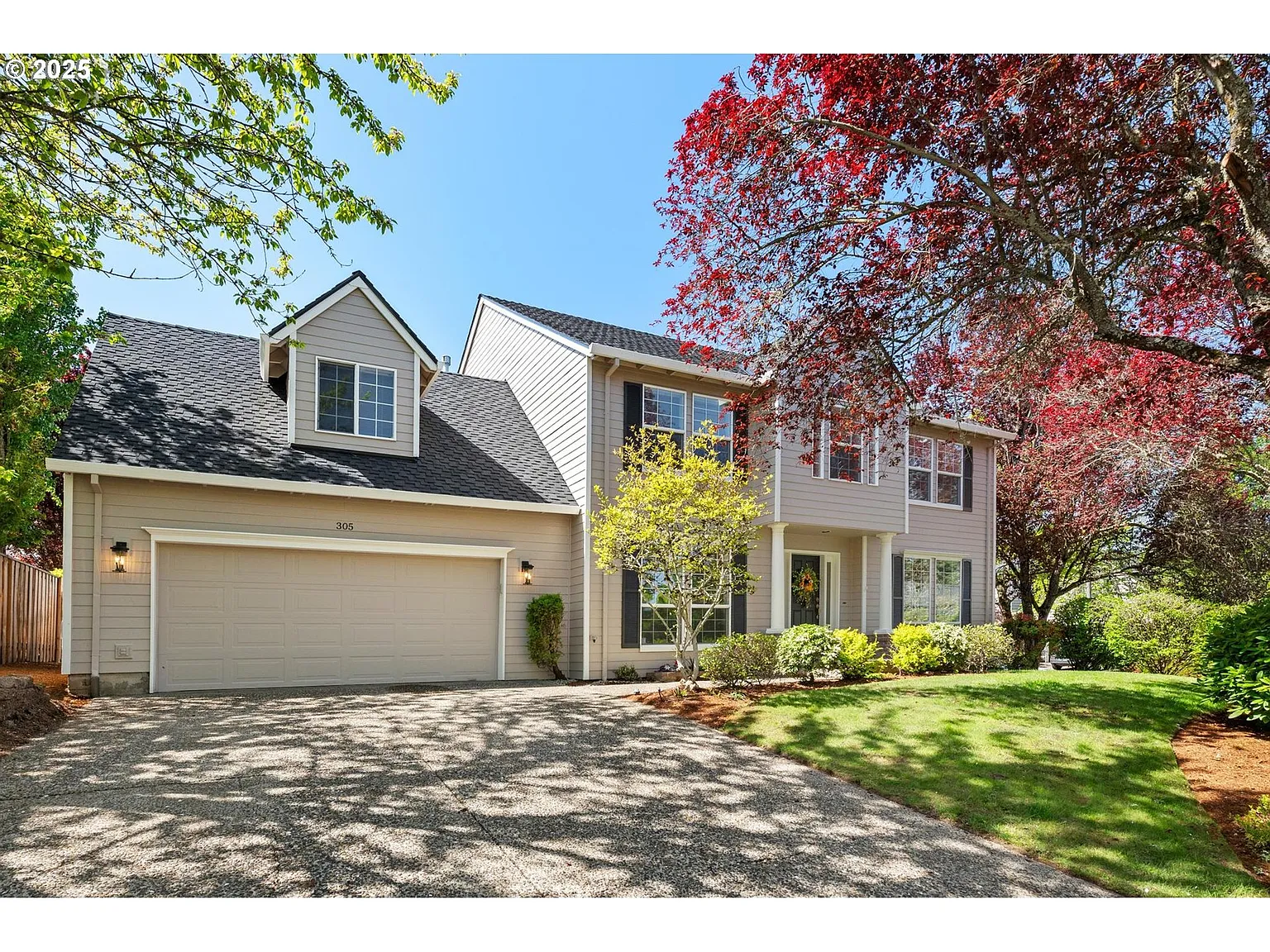 Beautifully updated modern traditional home in Waterhouse South. Premium corner lot nestled in a cul-de-sac setting. Pillared covered entry to foyer, extensive hardwood floors invite you to the flowing floor plan and natural light drenched interior. Spacious living and dining room with picture window views and passage to kitchen. Cooks Kitchen with gas range, built in desk, plentiful counters, cabinets and pantry space. Spacious family room open to bay window breakfast nook and kitchen. Slider to entertainers deck perfect for year round barbeque and relaxing on the new deck. French door to office at entry. Stunning railed staircase to spacious loft ideal for sitting room or study. Stunning primary suite with sitting area, walk in closet and ensuite bath. Deluxe primary bath with double vanity, soaking tub and shower. Two more full sized bedrooms up, plus a 27 x 14 bonus room easily converted to a 4th bedroom, or enjoy as a media room, game room or playroom! Professionally landscaped yard, fully fenced backyard with room to play. Great location just minutes to Tualatin Hills Recreation Park, Waterhouse Trail, Nike, Intel, transit, restaurants and shopping.