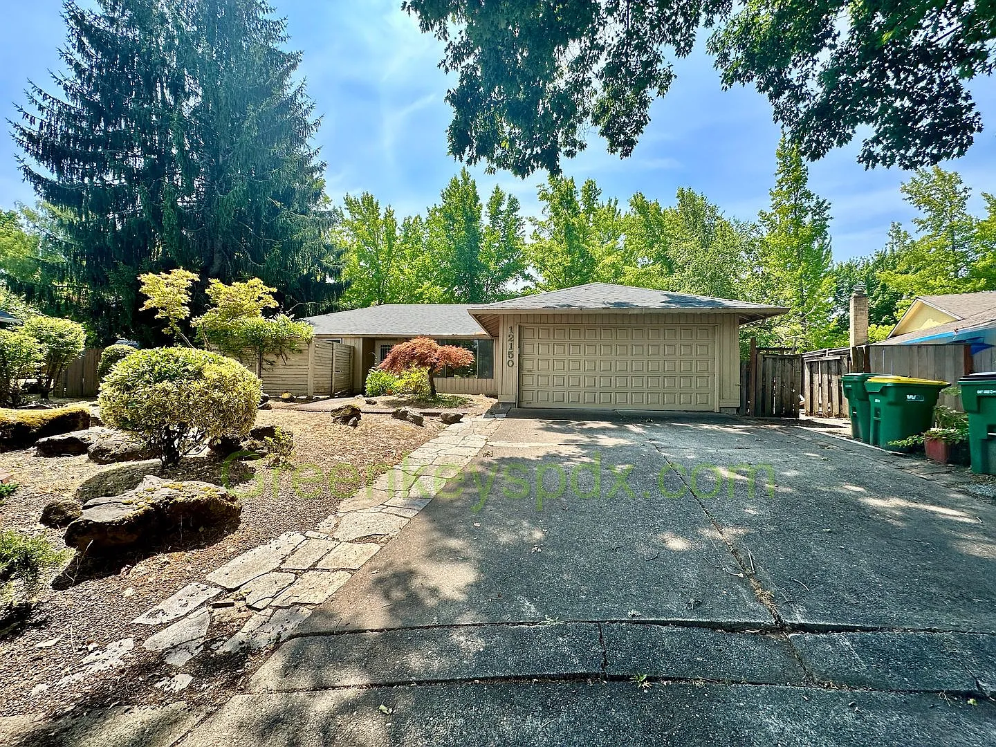 This spacious, one-level 4-bedroom 2-bath ranch with new stainless-steel appliances was built in 1976 and is located on a quiet cul-de-sac near stores, restaurants and other businesses. Close to Washington Square Mall and Highway 217. This house sits on a .22-acre lot and has a large brick patio in the backyard perfect for summer cookouts and entertaining. The living room features vaulted ceilings, and the dining room features a large window that lets in plenty of sunshine. The open-concept kitchen flows into the family room that features a wood-burning fireplace. The master bedroom features its own patio and sliding glass doors, and the master bathroom is attached for enhanced privacy. Beautiful, easy to clean and maintain caramel-colored laminate and tile flooring throughout. Brand new washer and dryer. Attached two-car garage offers plenty of room for storage. Forced air heating and central air conditioning! Utilities: Tenant pays all utilities, including garbage, water-sewer, electricity and Internet/cable (if desired). Managed by Green Keys Property Management LLC. Click on the "For Renters" tab to access the online application. Application fee: $45 per person 18 or over. Screening criteria: minimum credit score of 650 and monthly household income of at least 2.5 x rent. No Smoking. Pet Policy: up to 2 pets allowed with $30 pet rent. Only dogs under 40 pounds permitted. Move-in costs: first month's rent plus refundable security deposit. Interested in a tour? Contact us for an appointment. Please include your desired move-in date. Preference will be given to those who want to move in sooner rather than later. The first step is to take the video tour. Just go to the website of Green Keys PDX and click on the Our Listings tab. Find the photo of the house and then click on the blue Video Tour button.