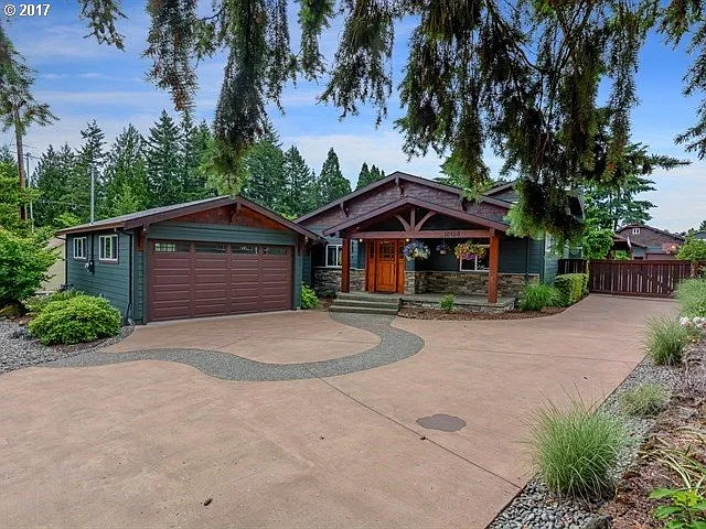 This is a one of a kind, Lodge style retreat from the city in the heart of Tigard. 1/3 acre level lot w/lovely custom home, gorgeous landscaping - plus amazing separate shop/RV covered parking combination. Stunning vaulted & beamed ceilings in the great room. Best quality finishes throughout. Real wood floors, natural wood wrapped windows, custom cabinetry, granite counters, abundant natural light & more.
