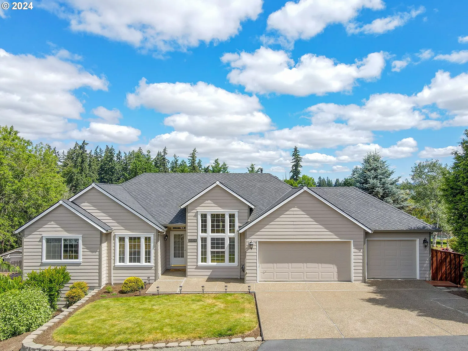 Discover this beautifully maintained home, a true find, nestled on a spacious nearly half-acre lot with ample room for your boat, RV, and the potential to build a shop or ADU. Located at the end of a quiet street, this residence offers a peaceful retreat with unmatched privacy. Step inside to a meticulously maintained interior boasting a fantastic floor plan. The primary suite, conveniently located on the main level, offers a walk-in closet and an updated bathroom complete with a soaking tub. Each of the home's three full bathrooms showcases new cabinet doors with soft-close hinges, granite countertops, modern sinks and toilets, stylish lighting, and backsplashes. The heart of the home is the kitchen, featuring new custom cabinet doors, soft-close hinges, pullout cabinet drawers, granite countertops, under-counter lighting, new appliances, and a delightful coffee or wine bar. The kitchen seamlessly flows into the living and dining rooms, where you'll find high ceilings, a cozy fireplace, and a door leading to a back deck with a picturesque view of the yard. The expansive daylight basement includes a large family room with a gas fireplace and sliding door to the backyard, two bedrooms, a full bathroom, a laundry room, and finished storage room. This versatile space, featuring an exterior wall, offers the possibility to add a window and create an office or fifth bedroom. The 3-car garage is fully finished with cabinets, a utility sink, a 220 outlet, new garage door openers, and pull-down stairs providing access to additional storage space above. The home also boasts a new presidential roof installed in 2018.The expansive backyard is a private oasis, adorned with mature landscaping, a smart irrigation system and two large decks perfect for entertaining. The RV and boat storage area, complete with a separate driveway and gated fence, adds to the home's convenience. Don't miss your opportunity to make this rare find your own! 10K carpet credit offered by seller!