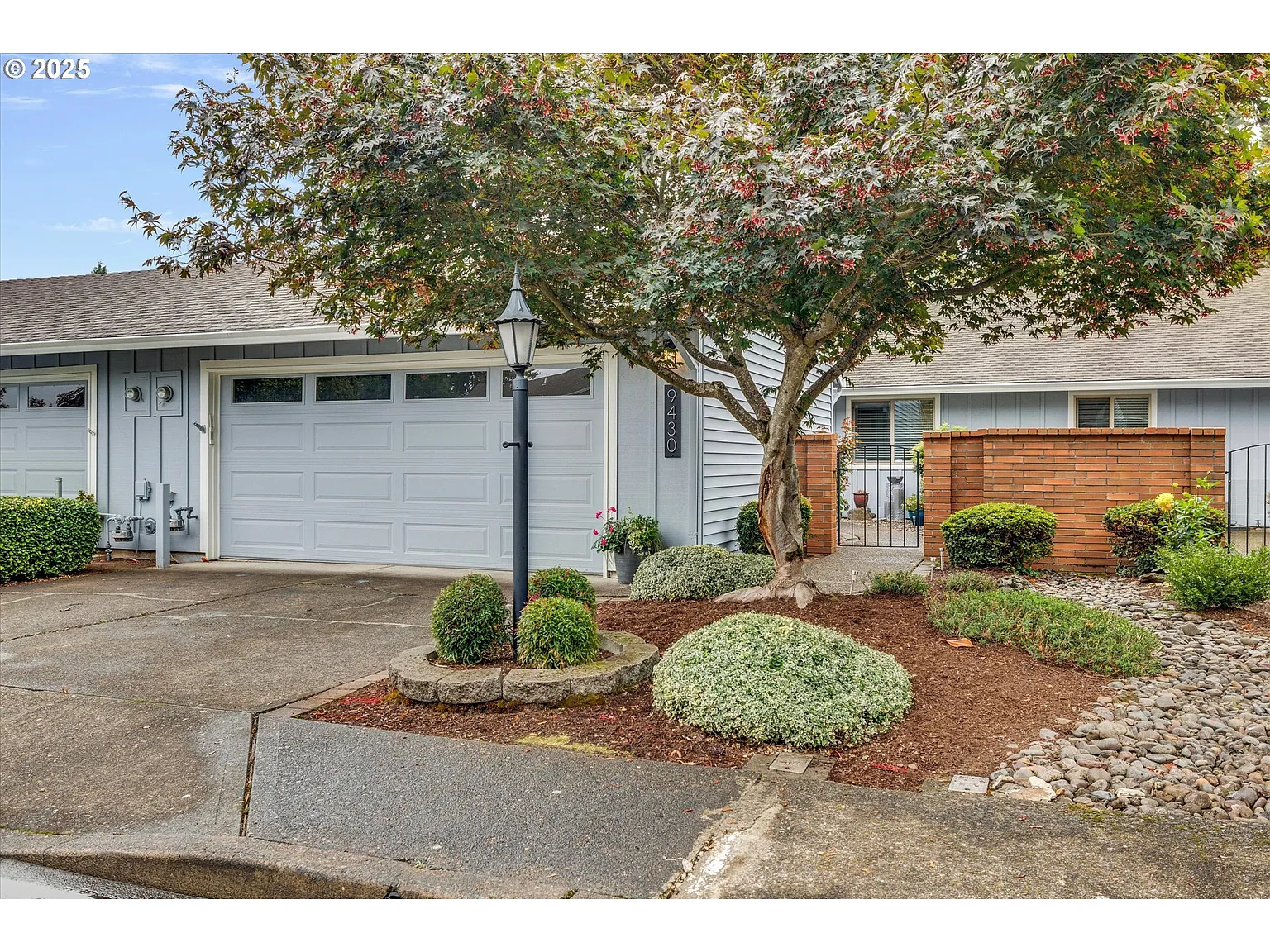 Welcome to this amazing 2-bedroom, 2-bathroom townhome, perfectly situated in a serene over-55 neighborhood. This one-level home greets you with a private gated courtyard entrance, offering a charming water fountain and secluded outdoor space for morning coffee or quiet evenings. Inside, the easy flow layout features a spacious living room with a cozy gas insert fireplace, creating a warm and inviting ambiance, and direct access to a private Trex deck, ideal for relaxing or entertaining. A modern galley style kitchen equipped with stainless steel appliances, newer refrigerator, dishwasher & range with a convenient eating area, flows seamlessly into the dining room making it ideal for casual dining. For ultimate convenience, the kitchen features direct access to an attached 2 car garage with new garage door with a ramp making it easy for grocery unloading.The light and airy primary suite includes ample storage with large closets, and primary bathroom includes a remodeled tub and shower. The second bedroom, is conveniently located by the second remodeled shower/bathroom. Laminate flooring, and neutral tones throughout this home exudes warmth and style. Step from the living room to a private new Trex deck, ideal for relaxing or entertaining. Newer features include, A/C, paint, tubs and showers, garage door, refrigerator, range and dishwasher. The washer and dryer are included in this home. Active HOA community, enjoy the amenities including a clubhouse, weight room, tennis, golf,& swimming common areas. Low HOA fees cover exterior maintenance and landscaping, ensuring a carefree lifestyle.