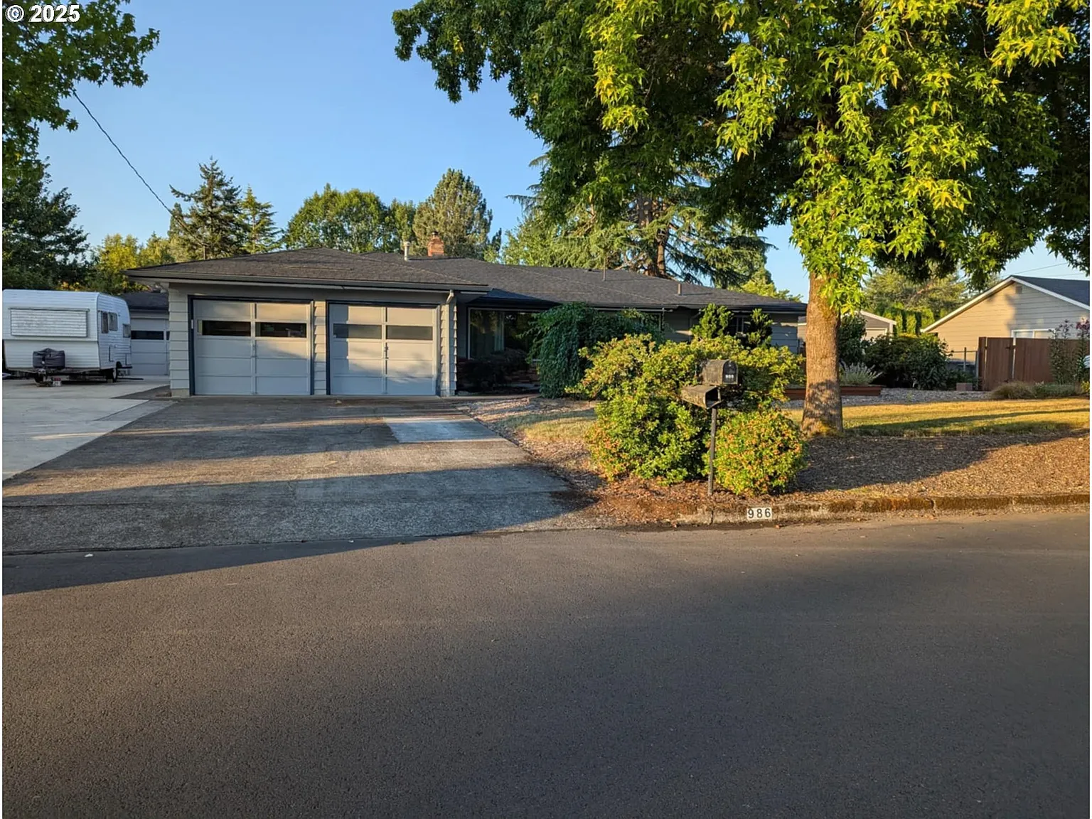 NO SHOWINGS WEDNESDAY 7/30/25. Mid century modern, huge lot with extra detached garage, RV parking, back yard w/ fireplace covered patio, garden space. Irrigation well with newer pump/pressure tank Home has hardwoods, new paint in/out. Finally a home for people who love to garden, entertain and travel all on one lot. Close in to downtown Hillsboro, quiet and welcoming neighborhood