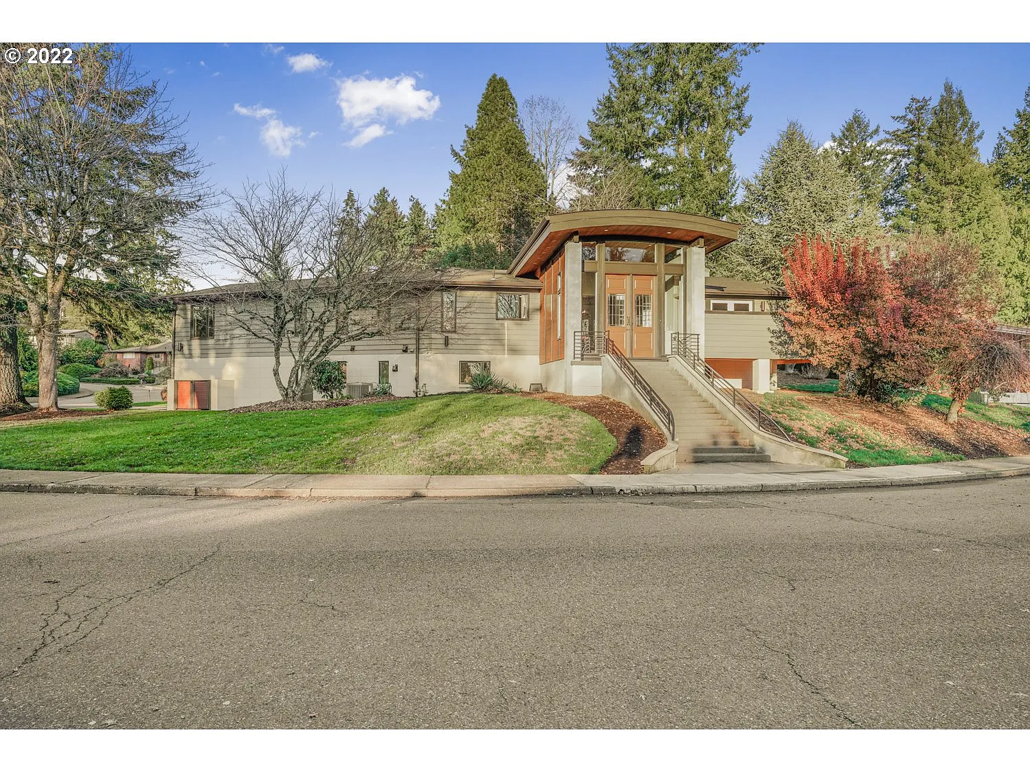 Stunning Mid-Century Modern on one-third acre in Washington County! The corner lot home has Great Room w/ beautiful vaulted ceiling, French glass doors to the balcony & grand fireplace. Gourmet kitchen w/ SS appliances, island, wet bar & granite counters. Tranquil primary suite w/ walk-in closet & private bath. Downstairs the perfect separate living area has bedroom suite w/ walk-in closet, private bath, partial kitchen, laundry & living room w/ fireplace.