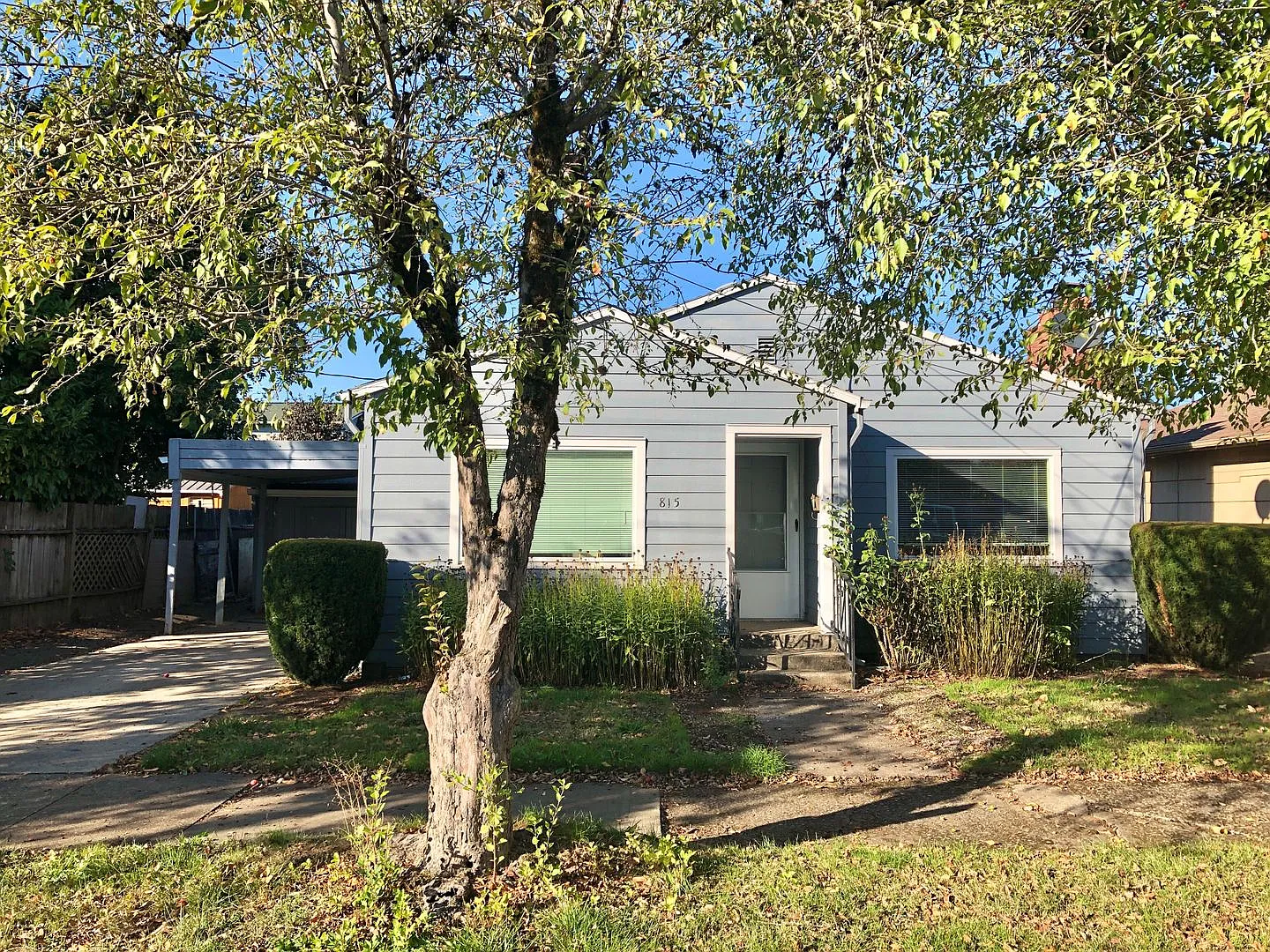 2 bedroom, 1 bathroom single family home located on a quiet street in a great neighborhood. 944sf, covered carport and a large, locked shed for storage and hobbies. Side door from carport walks in to the laundry room with W/D hookups. Both bedrooms have doors to the back covered patio and fenced back yard. Additional small shed in backyard for storage. Home has original built-in shelving and cabinets and hardwood floors. Baseboard heat in Living Room. Fireplace is not to be used. Small pet ok with approval and additional deposit of $500.00 per pet.