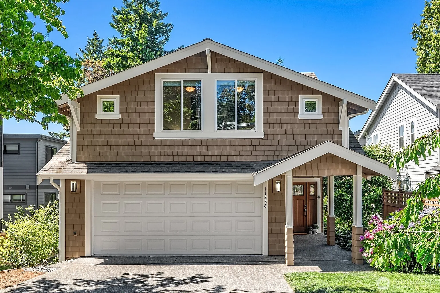 HUGE price drop! Peace and quiet Highly sought-after Houghton, this exceptional Kirkland home blends luxury, light & livability. Thoughtfully designed w/kitchen-level garage, welcoming covered porch & sunlit great room surrounded by windows. The chef’s kitchen features granite counters, mostly Miele appliances, gas cooktop, walk-in pantry & bar seating. 3 bedrooms up w/hardwoods, including the primary sanctuary tucked into its own wing with sitting area, fireplace, soaking tub & walk-in closet. Lower level offers guest suite, rec room w/wet bar & fridge, spa room w/infrared sauna for 2. Easily a MIL/ADU w/separate entry. AC, hardwoods in most rooms, grassy yard, fruit trees, blueberry bushes & jasmine blooms. Walk to parks, trails, cafés, Google & Met Market. Not attached and no dues!