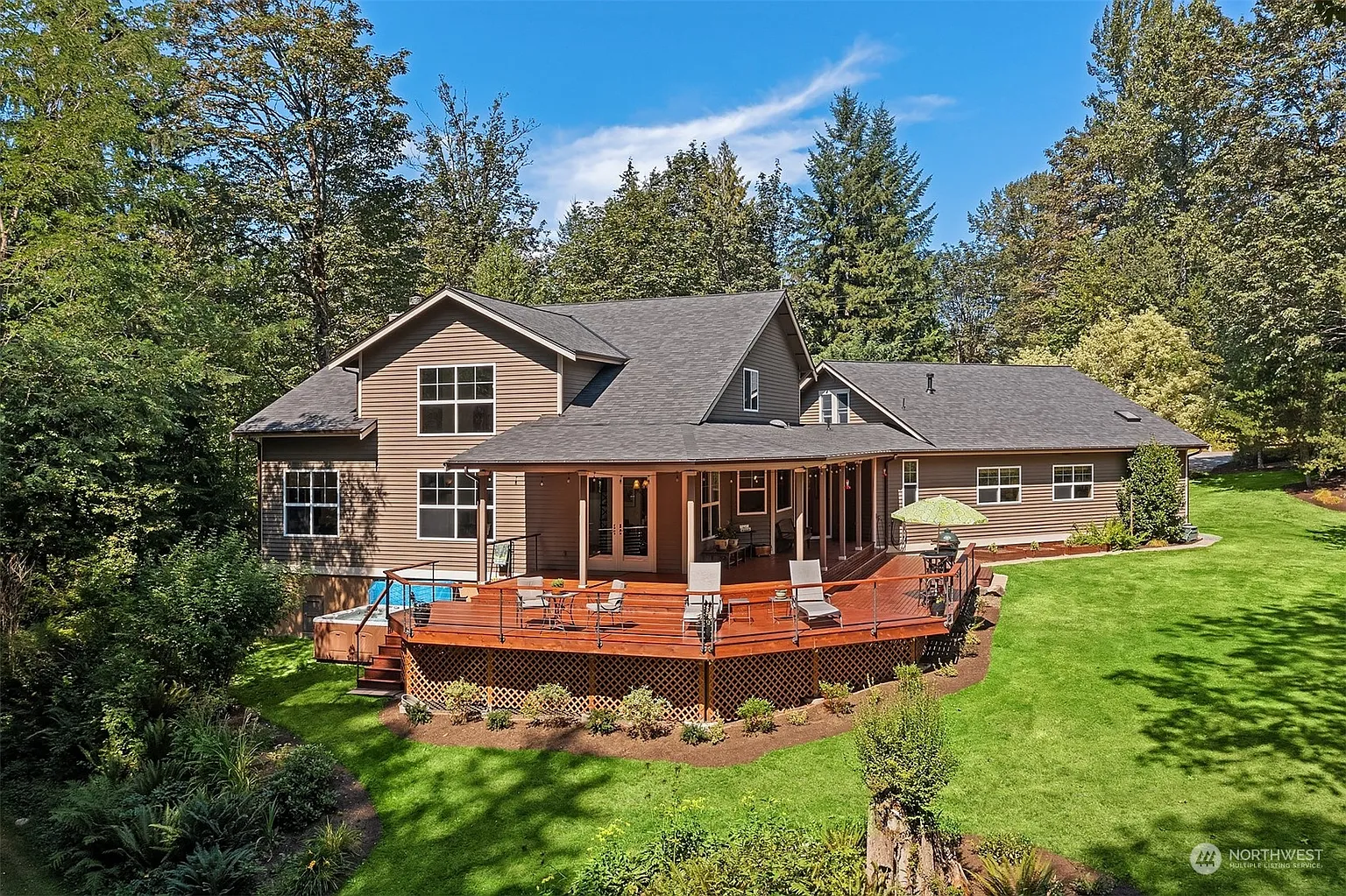 Lake Living is Here! 100 feet of prime Lake Joy waterfront! Situated on 3.22 acres with privacy and nature in your backyard! Covered porch and deck overlooking the breathtaking scenery. 2,980 sq ft. with primary bedroom on the main level and 3 bedrooms upstairs. 2.75 baths, main floor bonus room, upstairs "secret bookshelf" craft/art room and main floor office. New roof, gutters, carpet, Oil pit in 3rd bay of garage and 420 sq. ft. of unfinished space above garage for storage/MIL/theatre? Pre-inspected! Vaulted ceilings and large windows let in all of the natural light and views. Enjoy the pristine lake water and all it has to offer from sunrise to sunset! This home has it all! Minutes to Carnation or Duvall. NO HOA dues!