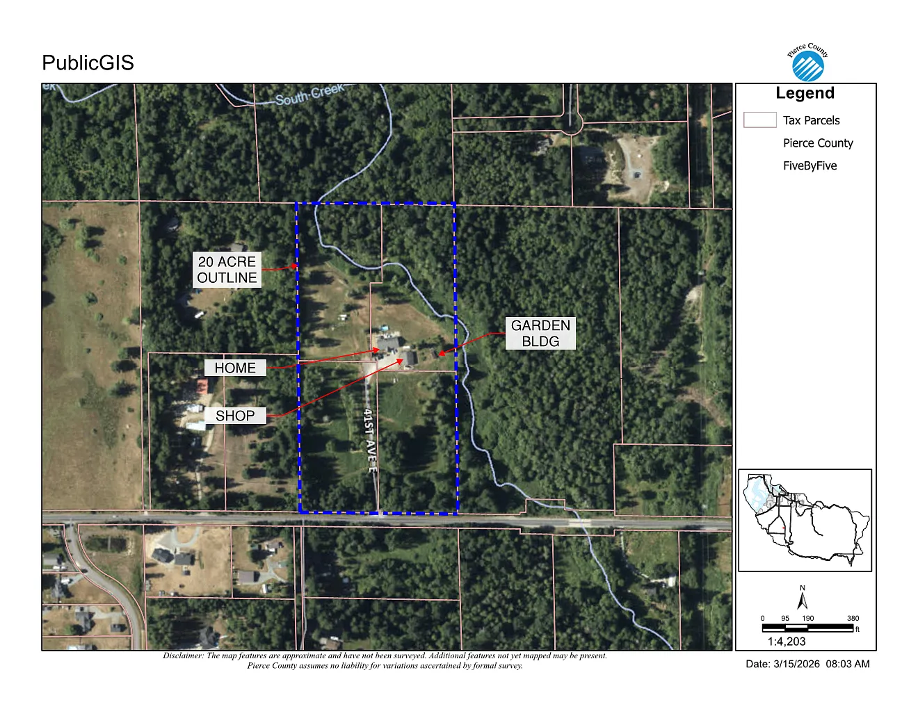 3600 SF brick house on 20 acres comprised of (4) 5 acre parcels. Great for a family compound, or take advantage of the new ADU laws and build (3) SF and (3) ADUs. Seller spoke with the county and had intended to build some ADUs, but now looking to move. See pics for a few site plan concepts, and some engineering studies were done, buyer to verify. No HOA. Private Well and septic. The attached garage has (3) 9'x9' garage doors, and it fits (3) full size F350s. It has a very private setting with a creek. Wildlife is everywhere: beavers, fish, eagles, deer, elk and coyotes. The nearest neighbor is ~1500' away. A detached 40' x 50' = 2000' SF block shop with (3) 10'x12' garage bay doors is waiting there for all your toys. Full RV Hookup is also available. The home has the main floor at 2400 SF. The upstairs is a 1200 SF giant bonus room with a bathroom and elevator and 2 craft rooms. Home is positioned well for multi-generational housing. We have had family gatherings and with the open concept floor plan had 75 people over Having the 20 acres nearly fully fenced is great for animals. There are plenty of trails and riding areas for dirt bikes and quads. Great place for livestock, bees and pets with a block barn garden building. It also has a raised garden, apple orchard apiary and a 15'x30' above ground pool. If the ad is up its still for sale! No LA needed, I got it! No keybox, only serious buyers, gated and viewings by appointment only. Please don't try and jump the fence or push thru the gate. Price determined by comps and me. Not interested in Lease wholesalers, please don't call, and we are not desperate to sell. Likely this will be a protracted close, June 2026. House is also getting fresh paint & a new roof. If looking for a package deal there are also 2 duplexes available: • 30517 / 30519 Webster Rd East, Graham. (5 minutes away) • 1412 / 1416 Whisler St NE, Olympia. (45 minutes away) * willing to pay 1% for buyer's agent.