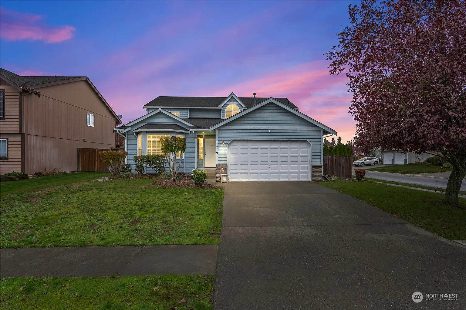 First time on the market for this charming 4-bedroom, 2.5-bath corner lot home nestled within a serene, gated community. Floor plan maximizes natural illumination, loads of storage, cozy gas fireplace, two separate living areas, & a formal dining. Spacious kitchen w/ a pantry & eat-in area opens to the great room. Primary comes complete w/ a walk-in closet & private bath w/ a skylight. Plus, three more beds upstairs. Situated on a generously-sized corner lot, this property includes a fenced backyard w/ a delightful patio area, perfect for outdoor gatherings & relaxation. The location is highly desirable, situated within the esteemed Puyallup School district, and just minutes away from an array of dining, shopping,& entertainment options.