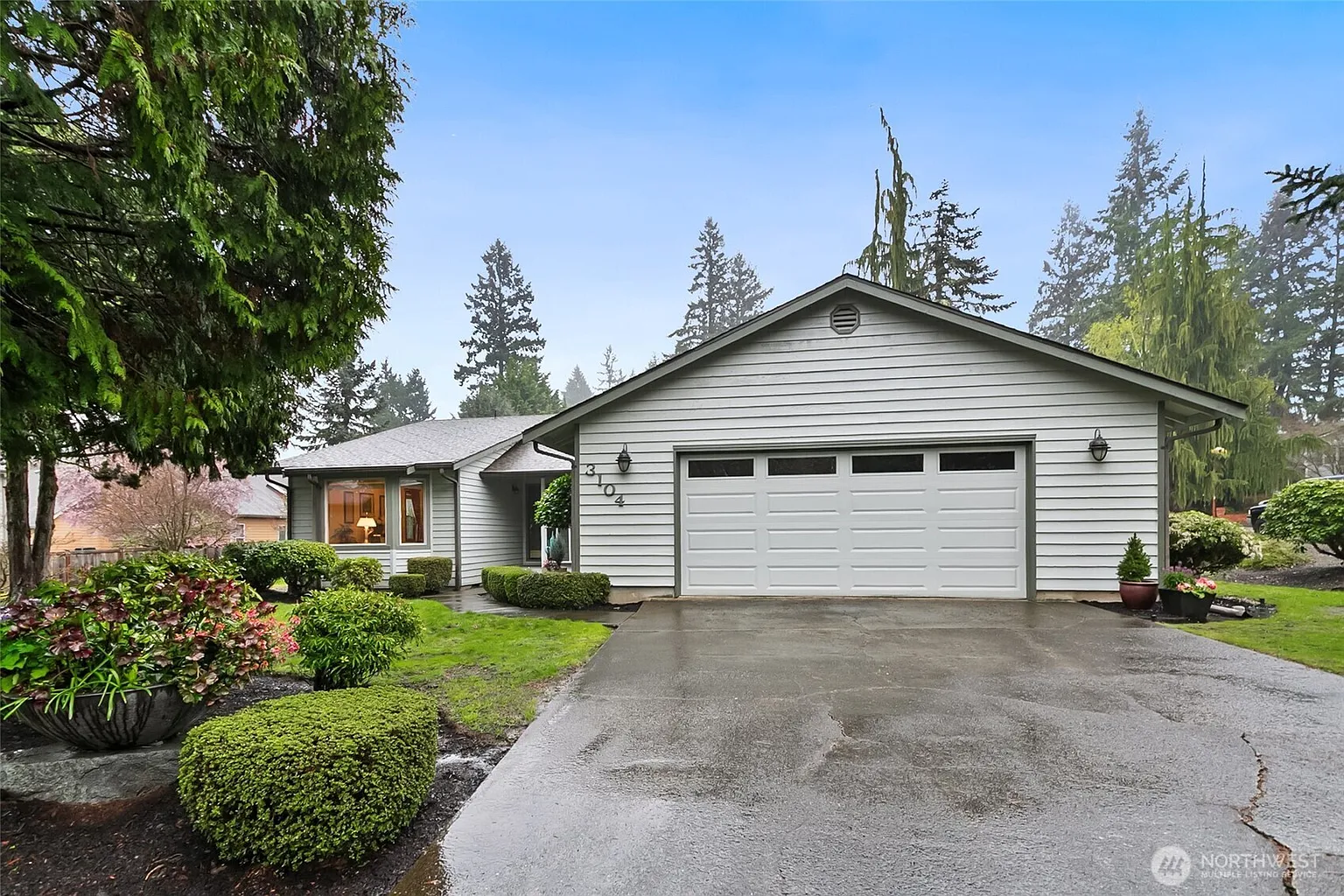 Don't miss this spacious 2,212 sq ft one-story Briarwood home, thoughtfully designed for both comfort and everyday living. A covered front deck welcomes you inside, where beautiful hardwood floors and abundant natural light create a warm, inviting feel. The home features a large formal dining room, a spacious eat-in kitchen with a pantry, and a roomy living room with vaulted ceilings and a cozy gas fireplace. A separate family room with French doors opens to the patio, offering a seamless connection to outdoor living. The generous primary suite is a true retreat, complete with a charming bay window with built-in seating and storage, a 5-piece bath with soaking tub, and a walk-in closet. Two additional bedrooms, a full bath, and a well-appointed laundry room with extra pantry space provide flexibility and convenience. Outside, you'll find a beautifully landscaped, park-like yard filled with mature trees, shrubs, and seasonal blooms—perfect for relaxing or entertaining on the patio. A two-car garage and ample additional parking complete the property. No HOA, and conveniently located near parks, schools, shopping, dining, I-5, and JBLM.