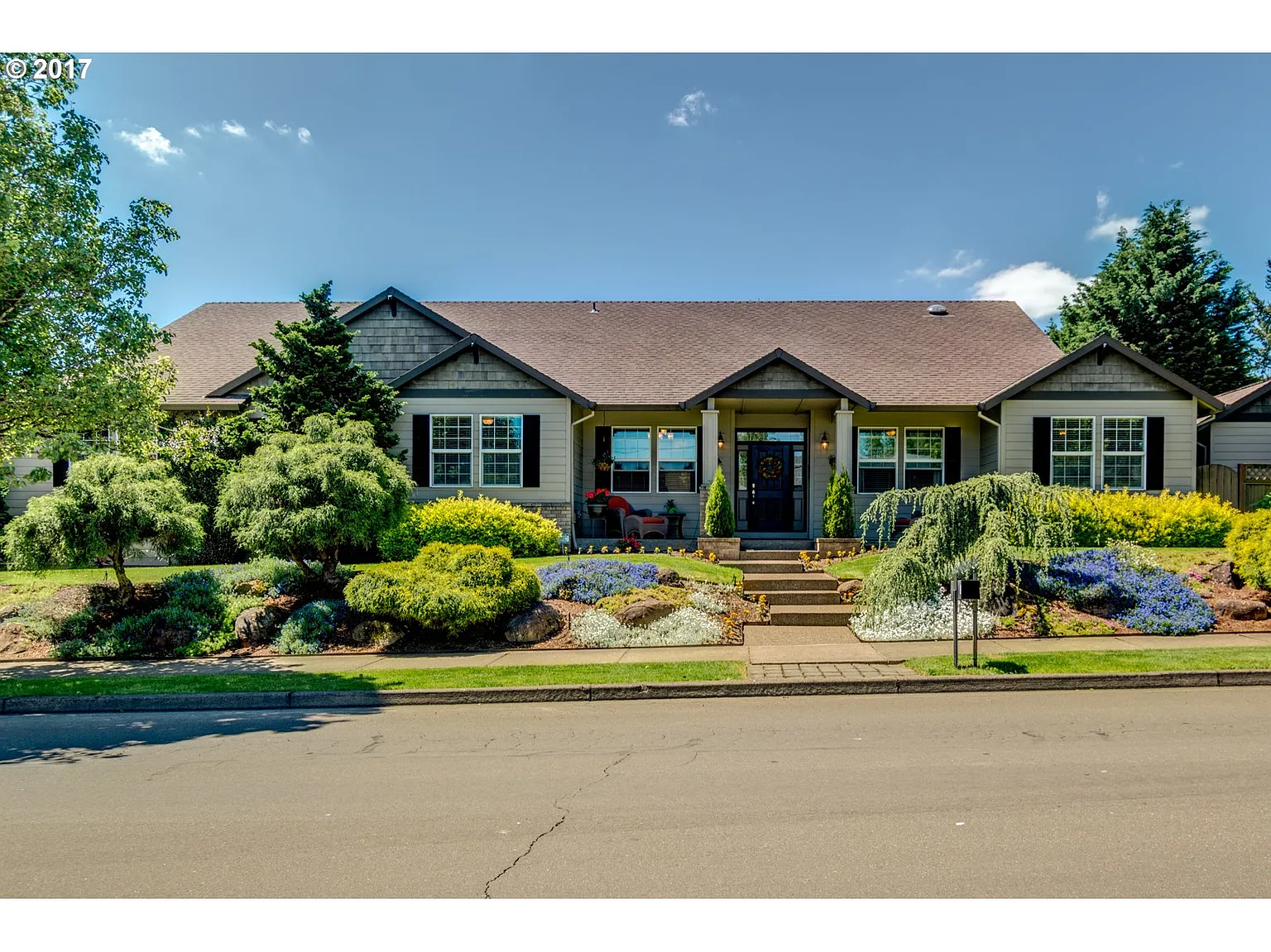This immaculate stunning ranch is everything you have been looking for. Located on 1/4 acre, corner lot has so many amenities. Spacious open concept with 9ft ceilings and vaulted 15ft ceilings in living room. Formal dining room and separate breakfast nook. Storage galore. HUGE garage with custom work bench. The backyard is a sight to be seen with water features, creek and pond.