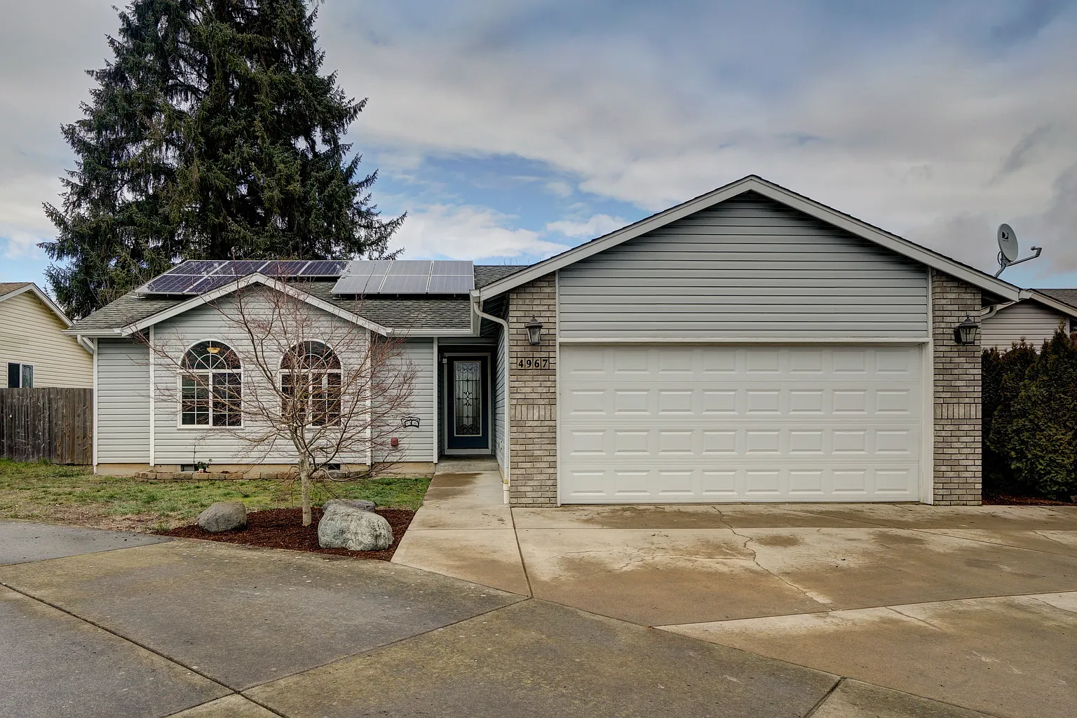 Retreat from the hustle and bustle of everyday life simply by coming home! 4967 Manning Ct is loaded with updates and perfectly situated in a quiet spot in the lovely Jan Ree neighborhood. The open floor plan comes complete with fresh interior paint, new carpet and vinyl flooring, modern fixtures, recessed lighting, storage space, tons of natural light, plus low maintenance vinyl siding and an attached 2 car garage. Large windows fill the living room with natural light creating an inviting atmosphere for entertaining and function. Open to the kitchen where custom oak cabinets, a tile backsplash, breakfast and stainless steel appliances make this space glow! A modern chandelier and vaulted ceilings highlight the dining room or easily use this as a family room if that better suits your needs. The soothing master suite is ready to relax and pamper you with its new plush carpeting, abundant closet space and private bath. The two secondary bedrooms and a shared full bath provide room for everyone. Enjoy BBQ’s and fun in the sun from your large rear deck overlooking the fenced yard! Offering the finest in one level living, this Salem OR home will not last. Make your appointment today!