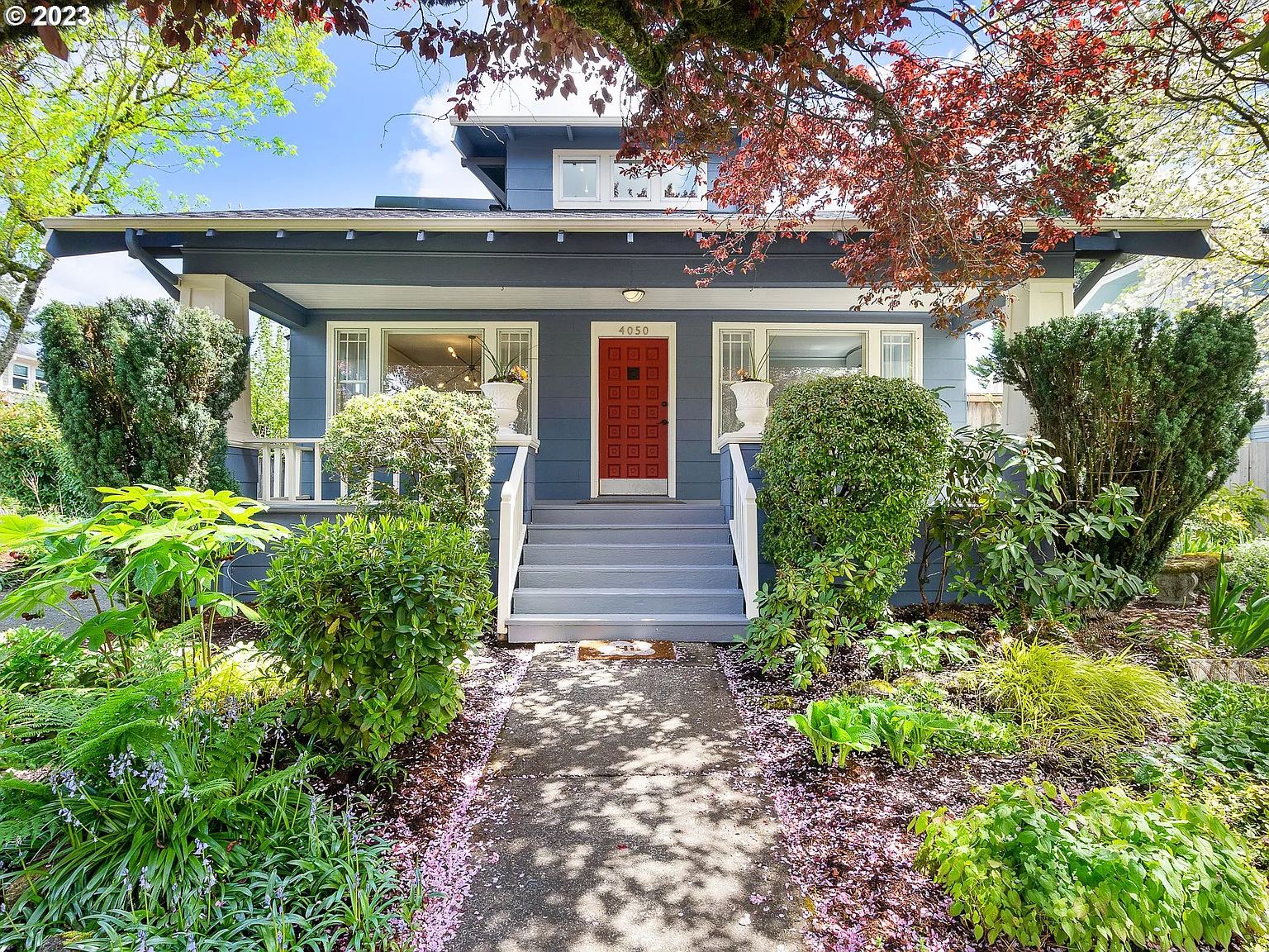 Serene and beautifully maintained Alameda bungalow. Grand western facing covered porch greets you as you enter this magnificent home. Great for the coming warm Summer evenings. Living room has a newer gas fireplace, built-in bookshelves and hardwood floors that lead to the spacious dining room with its original craftsman hutch. In the heart of the home you have the efficient designed kitchen with stainless steel appliances, tall cupboards for extra storage and serving window to dining room. 2 well sized bedrooms with walk-in closets and gorgeous trim molding. Glass door exit in one of the bedrooms leads to sunny side deck. Updated full bath on main. Head upstairs to the bright landing and loft area with built-in desk, shelves and storage. Primary bedroom includes walk-in closet and en-suite period style bathroom with refinished clawfoot tub, pedestal sink, wood cabinetry and beauty desk. Lower level features large family room, bonus (guest) room, laundry & storage. Also a 1/2 bathroom with utility sink that could easily be turned into a 3rd full bath. Out back the fully fenced in yard includes brick patio, raised garden beds, abundance of fruits & established flowering plants. Look out for the neighborly garden bunny! Garage was converted to a workspace with 220 power used previously as a pottery studio. Tons of gorgeous light ready to brighten your creative spirit! Super cozy hug-like radiant heating through out and recently added mini-splits to keep cool when needed. Off street parking in driveway. Take a 15 min stroll to Whole Foods, coffee & restaurants or head up to Alberta Arts for Salt & Straw or local brew. See the virtual tour links for more information! [Home Energy Score = 4. HES Report at https://rpt.greenbuildingregistry.com/hes/OR10215067]