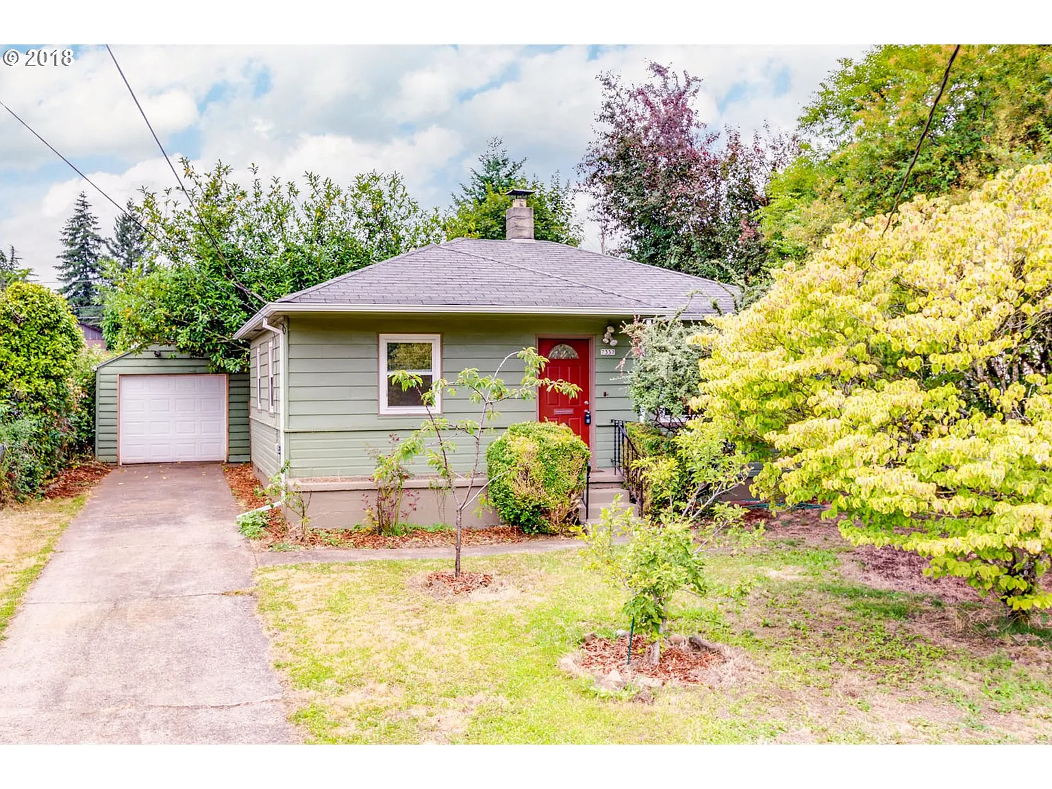 Updated, Mid-Century Cottage on Expansive Lot & Quiet Street! A canopy of trees in front offers privacy. Light dances on the refinished hardwoods from the picture window. Updated kitchen w new flooring, quartz counters, tile backsplash & pendant light. Neutral colors. Generous bedrooms. Updated bath. Central Vac. Covered patio in fully fenced backyard. Oversized, detached garage w loft space. Prime location for MAX & bus lines! [Home Energy Score = 5. HES Report at https://api.greenbuildingregistry.com/report/hes/OR10012258-20180709]