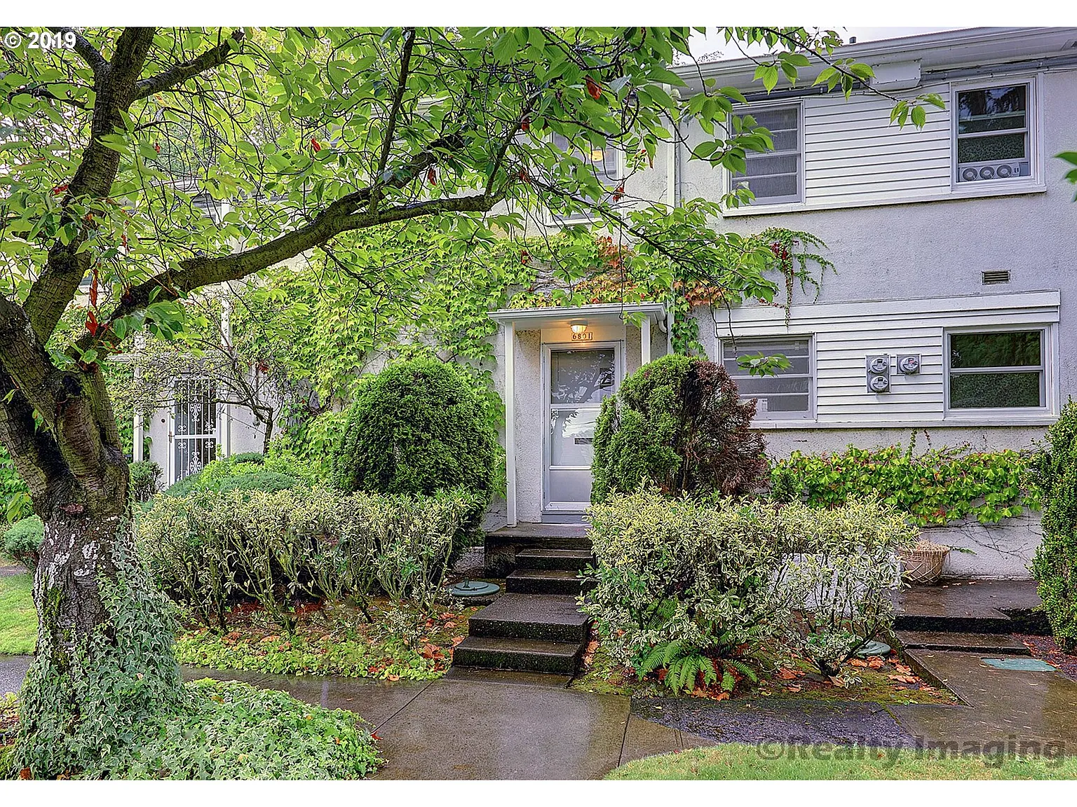 This mid-century condo is light filled with a freshly painted interior and lovely hardwoods throughout. A portable dishwasher sits under the counter top. The open living/dining area with a wall of windows looks onto a spacious patio and is facing a secured courtyard with walking paths. Bus line is 2 blocks away. Unit is close to Rose City Golf Course. Off street parking is available. [Home Energy Score = 5. HES Report at https://rpt.greenbuildingregistry.com/hes/OR10181681]