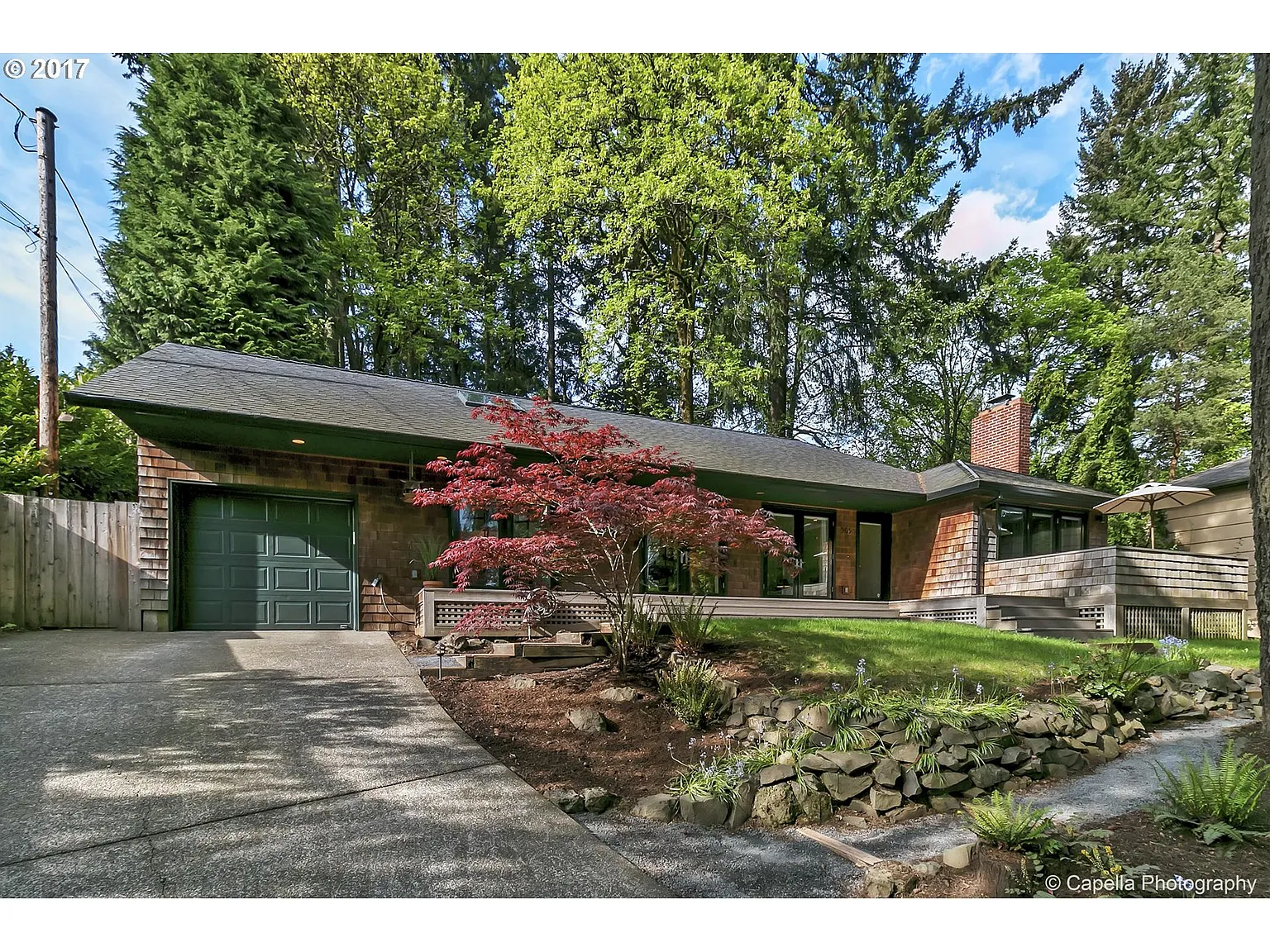 WELCOME TO YOUR NEW HOME! Immaculate contemporary ranch home minutes from downtown and OHSU! Private yard w/flagstone terraces. Home features all wood floors on main level, cherry fireplace, private deck in master bed. Granite counters and stainless appliances. Tons of custom windows and French doors for abundance of natural light. Lots of skylights. Separate private guest quarters on lower level. Covered patio and hot tub. A MUST SEE!!