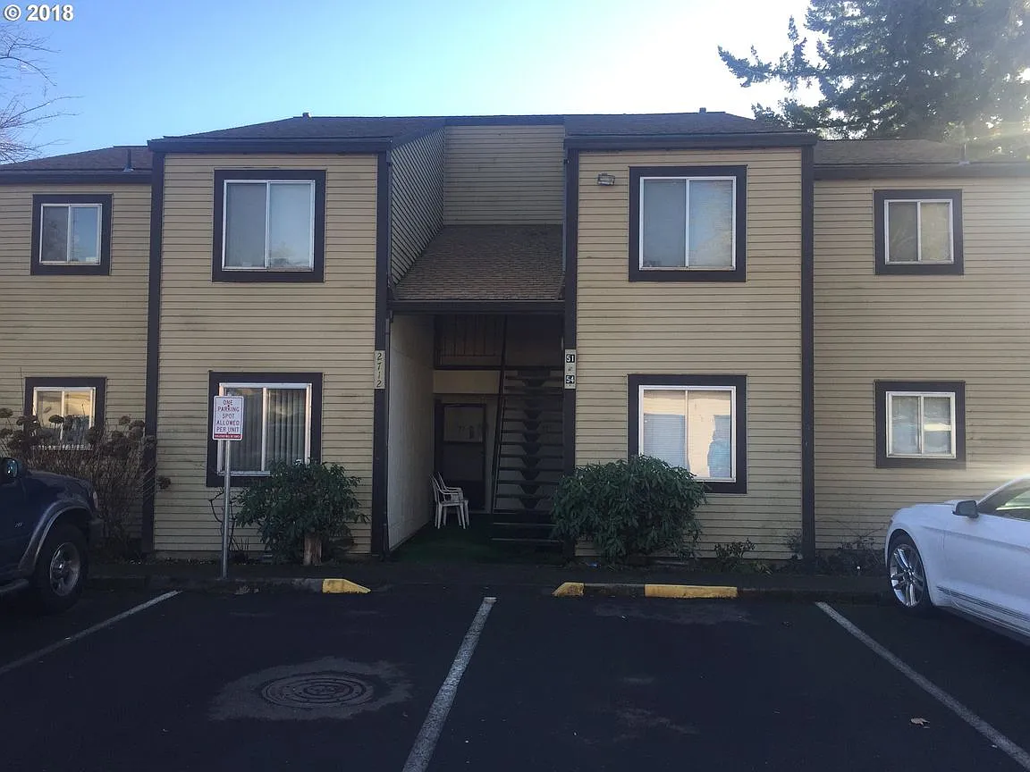 2 bedroom 1 bath upper unit condo with deeded garage. Ready to update or leave retro. Kitchen cabinets have been upgraded and has newer laminate in the common areas. Enclosed deck off the living room. Includes a convenient laundry room off Master bedroom that has double closets. Community Clubhouse, Indoor Pool, Billiards, Hot Tub. Affordable PDX living or use as rental income. Carpet has been ordered for 2nd bedroom. Inc Home Warranty