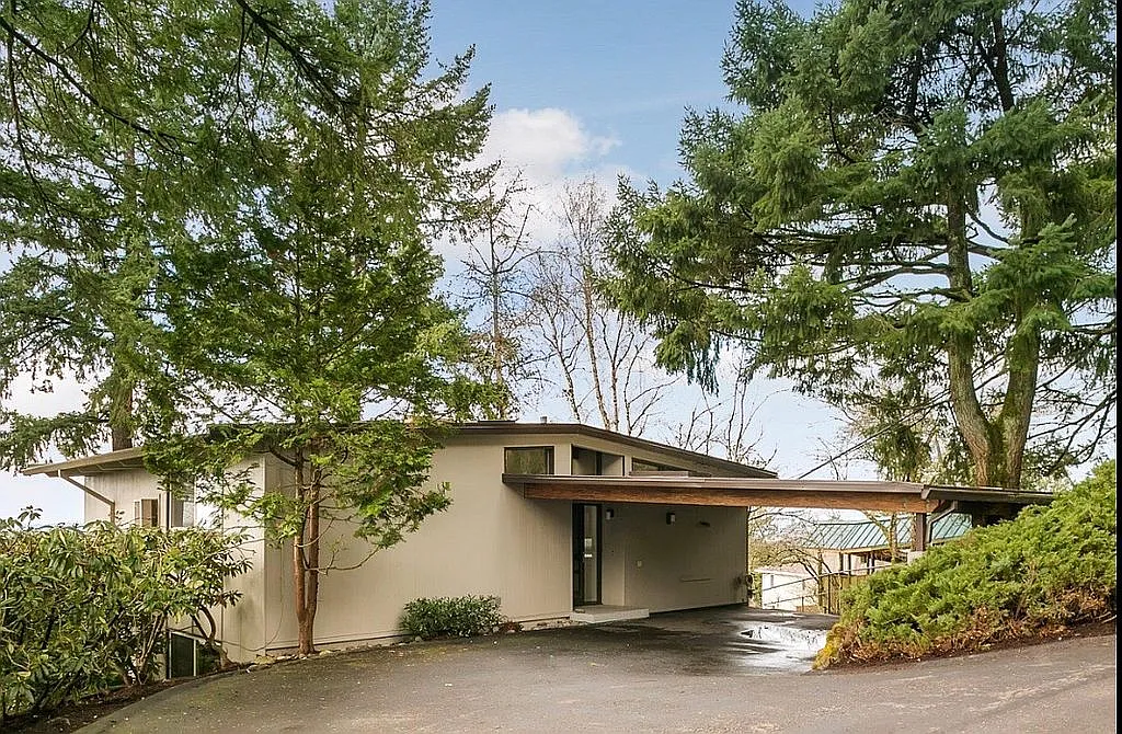 Classic mid century with an unbeatable view. Vaulted ceilings, modern fireplaces, lots of natural light from two-story windows and ample sunlights. Large flat fenced-in backyard with mature garden. Walking to Council Crest Park and Hillsdale.
