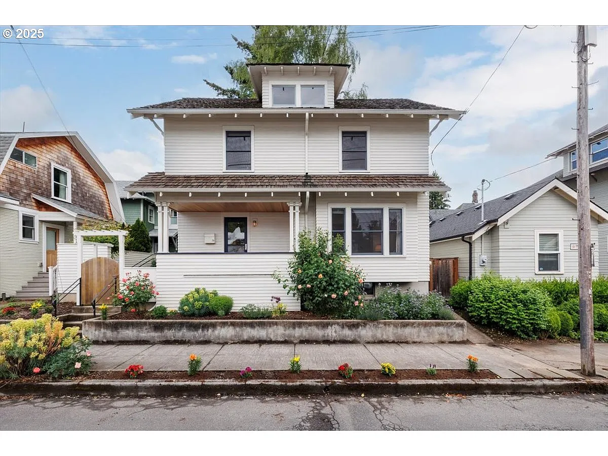 Stylish vintage chic in sought after SE PDX Sunnyside neighborhood! Updated over the past few years to capture the essence of its original charm. This lovely 3 bedroom home is move in ready. Light & bright living all day long! Chef’s kitchen with gas cooking, stainless appliances, open shelving, counter to ceiling tile backsplash, stainless island with barstools & plenty of storage. Charming original built-in cabinets in foyer. Main floor half bath with floor to ceiling tile with classic wall mount sink. Upstairs bath remodel in 2022 boasts walk in shower, twin sinks & high end finishes. Hardwood floors throughout refinished in April 2025. Fresh paint! Custom Cedar Roof & Siding 2018. Updated in 2018: Electric, plumbing, on demand water heater, high efficiency furnace, AC & kitchen appliances. Ample patio for outdoor living with minimal upkeep. Relaxing front porch perfect for summer evenings. Raised front yard beds have plenty of room to garden. Minutes to the vibrant Belmont & Hawthorne neighborhoods. Welcome Home!