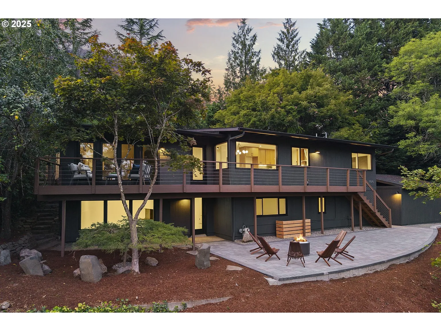 OPEN 8/3/25 FROM 3PM-5PM. Mid-Century Modern Gem in the West Hills - Step into timeless design and modern comfort with this beautifully updated 1957 mid-century modern sanctuary. Set on a desirable corner lot in the heart of SW Portland, this home offers 2,744 square feet of living space, featuring 5 bedrooms, 3 full bathrooms, and breathtaking south-facing views. Spread across two light-filled levels, this home is designed to maximize natural light with expansive south-facing windows that flood both floors with sun. The main level boasts newly refinished hardwood floors, vaulted ceilings, a wood-burning fireplace, and a fully renovated kitchen that seamlessly blends style and function. You'll also find two bedrooms, including a luxurious primary suite complete with a spacious walk-in closet and a beautifully updated en-suite bathroom. The lower daylight level offers a generous second living area with another wood-burning fireplace, three additional bedrooms, and a fully remodeled hall bathroom. Thoughtfully updated throughout, recent upgrades include: new plumbing and electrical, new roof, interior & exterior paint, tankless water heater, heat pump with AC, new flooring, and lighting fixtures. Located just minutes from Council Crest Park, Healy Heights Park, the Fairmount Loop, and Hillsdale Town Center, with access to top-rated schools, this home is tucked into a neighborhood known for its iconic mid-century homes and forested charm.