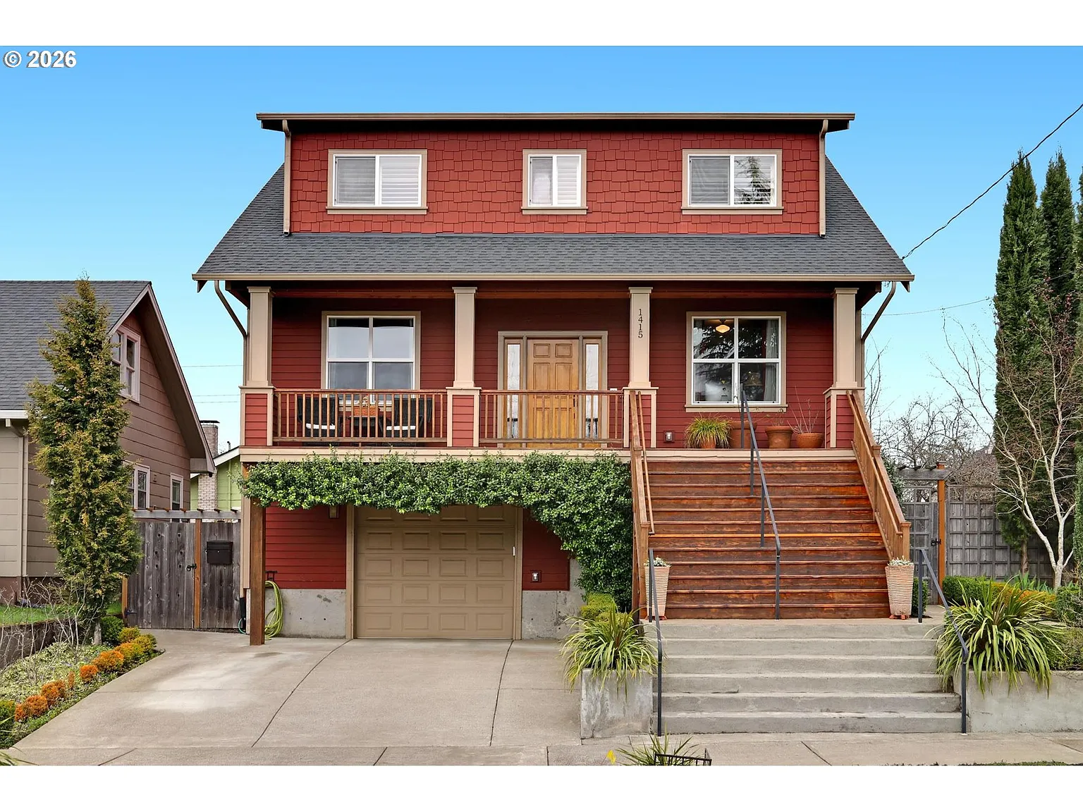 Remarkable home in excellent condition, perched high above the street with a sunny southern exposure. Pride of ownership is evident in every detail of this one-owner residence, with the seller thoughtfully involved in selecting finishes and color schemes throughout.The great room layout, centered around the kitchen, creates an inviting space for both everyday living and entertaining—allowing seamless interaction with the chef de jour while enjoying island prep or gathering with guests. Elegant flooring throughout elevate this newer build, giving it a refined, custom-home feel.The home features abundant built-in cabinetry, a convenient butler’s pantry, and beautiful granite countertops that carry consistently through both the main and second levels. Don’t miss the lower-level auxiliary living space—currently not permitted as a short-term rental, but offering all the elements needed to become one, or to function as a separate apartment for multi-generational living complete with a full kitchen, laundry and separate entrance. The backyard is a masterclass in both design and function, with rich organic soil, a wide variety of flowering plants, hard raspberry and blueberry bushes, raised beds ideal for vegetable or flower growth, espalier apple, pear, and fig trees and excellent privacy due to a boarder of trees. It’s a true pleasure to experience during the cool evenings of spring and summer. [Home Energy Score = 7. HES Report at https://rpt.greenbuildingregistry.com/hes/OR10246027]