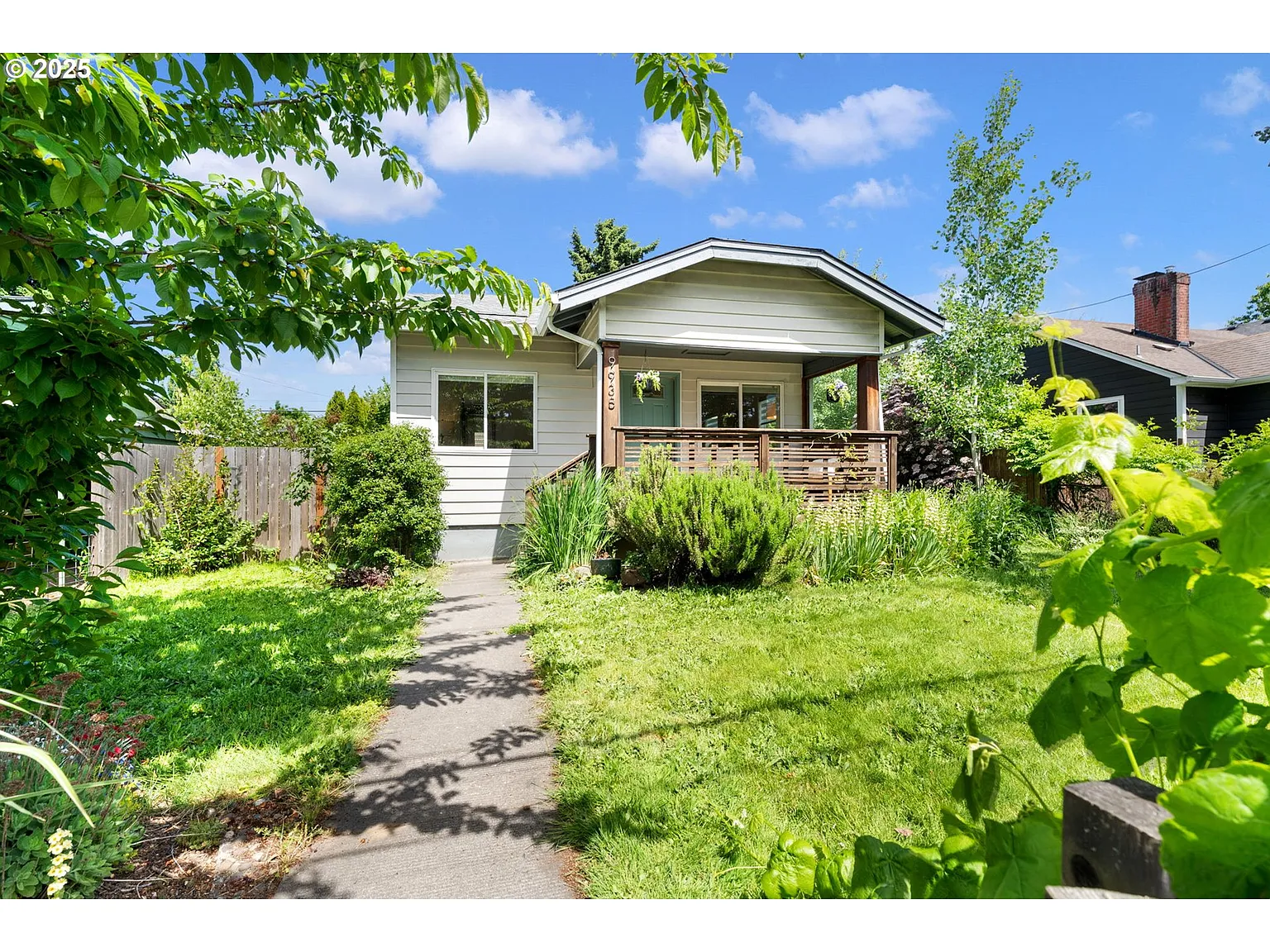 Head through the gate and into your own slice of North Portland whimsy with this charming urban oasis! The front yard bursts with personality thanks to mature fruit trees, thoughtful plantings, and a covered porch with windscreen—perfect for sipping morning coffee or enjoying some sunny people watching. Inside, this 1920s bungalow blends vintage soul with smart updates. Hardwood floors, delightful original details, and an updated kitchen featuring terrazzo quartz countertops, a gas range, an eating bar, and plentiful storage create a cozy yet functional space. Both bedrooms share convenient access to the jack-and-jill bathroom, and the primary bedroom seamlessly opens to backyard bliss via a slider. The mudroom is the perfect landing pad for houseplants, pets, or muddy boots, and its warm exposed wood makes rainy days feel just a little more magical. Downstairs, a high-ceiling unfinished basement with laundry hookups offers endless potential: storage, workshop, jam space, future hangout zone—you decide. Out back? Even more to love with a spacious, sunny yard featuring more trees and additional plantings, a partially covered deck, alley access with off-street parking, and a detached studio with hand and foot holds to practice your climbs, electricity, windows, a skylight, and amazing vintage glass brick details. Whether you dream of a peaceful home office, a personal yoga studio, or a creative retreat, this flexible space is ready to bring your vision to life! Tucked just blocks from Pier Park, Chimney Park, and St. Johns Park—and close to the vibrant downtown St. Johns scene—this little gem is BIG on lifestyle. With a Walk Score of 68, a Bike Score of 93, and a bus stop close by, it’s easy to walk, bike, or roll your way through your new neighborhood and beyond. Come fall in love! [Home Energy Score = 6. HES Report at https://rpt.greenbuildingregistry.com/hes/OR10238428]