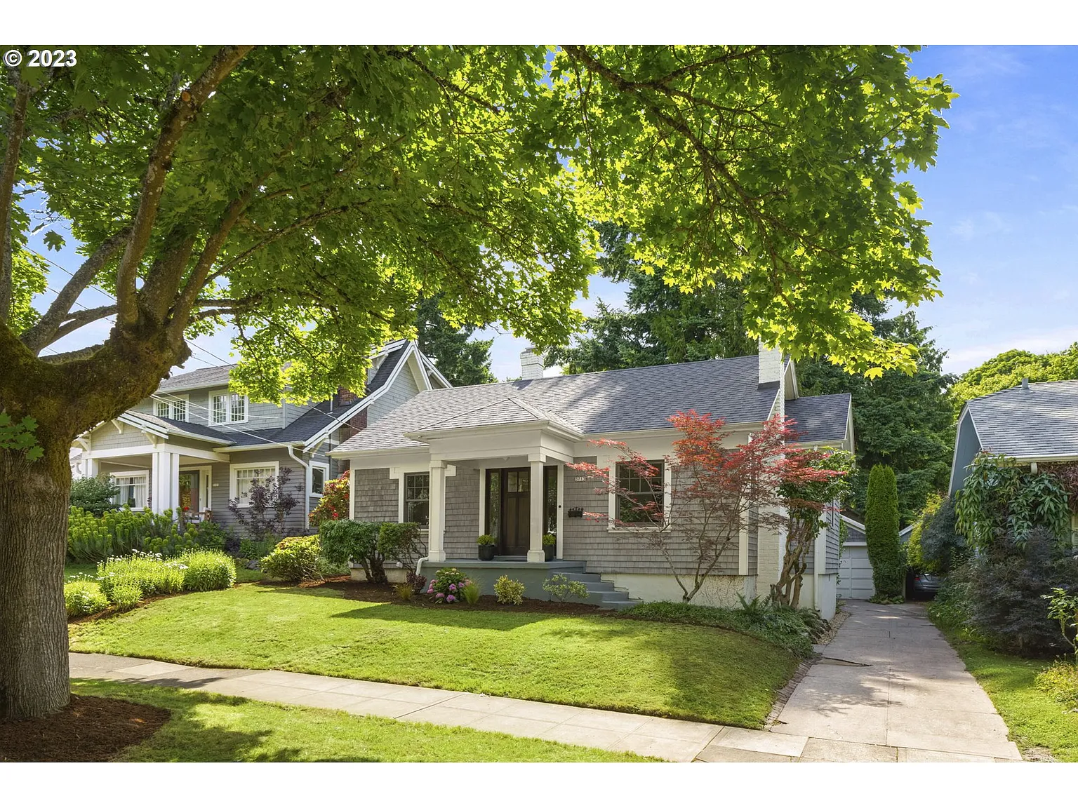 Well-Maintained 1924 Bungalow located in the highly coveted Alameda neighborhood. An oversized front door leads into the living room with hardwood floors & wood burning fireplace. The dining room features original built-ins. Refreshed kitchen with quartz counters, tile backsplash, & stainless steel appliances. Primary bedroom with a windowed walk-in closet. Beautiful mature landscaping with trees, fully fenced yard, covered patio, detached one car garage & plenty of room to garden. Upgrades include wood clad vinyl windows, interior paint, & new roof in 2023. Located on a picturesque street within a short distance to Irving Park, Whole Foods, restaurants, coffee shops & more. This classic Portland charmer is a must-see!