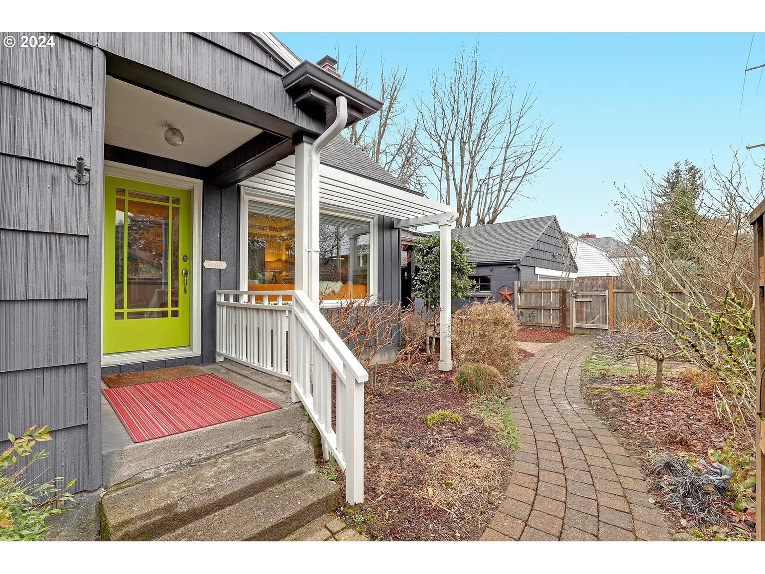 You need to see to believe this Rose City treasure! Tucked behind the exterior privacy fence lies a protected hideout that feels a world away. Gracious formal living and dining with wood burning stone fireplace opens to an amazing outdoor entertaining space. Enjoy year round dining and lounging under the vaulted covered patio with hot tub and water fountain. The light filled chef's kitchen is straight out of a Nancy Meyer's movie set with 6 burner Dacor range, separate Dacor oven, sunny breakfast bar, soapstone and butcher block counters and wonderful storage and prep space. Main floor bedroom and bath with heated tile floors and luxurious walk in shower. Spacious upper level primary suite boasts separate office loft and attached bath. Remodeled lower level with kitchenette, full bath and bedroom studio perfect for guests or potential ADU. Side door and private gated courtyard provide maximum flexibility for separate living quarters. A home gym, wine storage, pantry and laundry complete the lower level. Oversized detached garage with workbench for projects and storage or further expansion of living space. The yard offers so much to explore and discover! Beautiful flowering gardens and raised beds for your green thumb. Vinyl windows, mini split & radiant heat, radon mitigation and earthquake retrofit! Lovingly maintained and fully updated, this property was built for entertaining and exudes a rare level of warmth and hospitality. You are invited in and encouraged to stay for a while. A truly special place. OPEN Sat. 11-1! [Home Energy Score = 4. HES Report at https://rpt.greenbuildingregistry.com/hes/OR10051833]