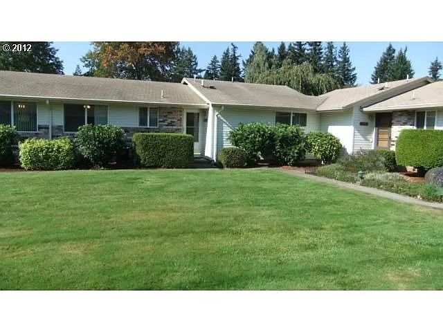 One level, end unit with effecient floor plan,hardwoods and newer vinyl windows throughout,close to clubhouse and pool,private patio with beautiful painted mural,seperate utility room. Buyer to pay $1,500 initiation fee, land is leased for $70 per month in addition to HOA