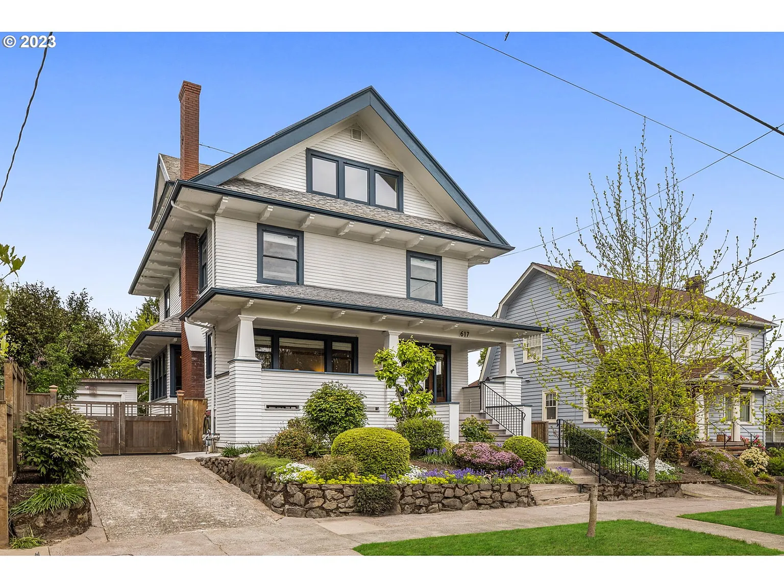 This Laurelhurst gem has been meticulously restored and updated, while still honoring its historic charm! Original hardwood floors and brick wood burning fireplace on main. Vintage details include restored push-button light switches, crown molding, and built-ins. Gorgeous updated kitchen with built-in stainless steel gas appliances, double oven, luxury wolf gas 6 burner range, wine cooler, island with eat bar, farmhouse sink, granite counters, tile backsplash, butler's pantry, mudroom, and extra wide doors to beautiful back balcony. All four bathrooms are updated, showcasing stunning tilework and quartz and granite counters. 5 bedrooms plus office featuring walk-in closets. Large daylight basement includes a large family room, a bedroom, and full bathroom. Washer and dryer hookups in both the utility room upstairs and laundry closet in the basement. Fenced backyard with expansive deck. New sewer line, new 1' water supply line, and new electrical just to name a few upgrades! See features list for full list of updates. Located in one of Portland's most desirable neighborhoods- just minutes away from parks and stores! [Home Energy Score = 1. HES Report at https://rpt.greenbuildingregistry.com/hes/OR10214791]