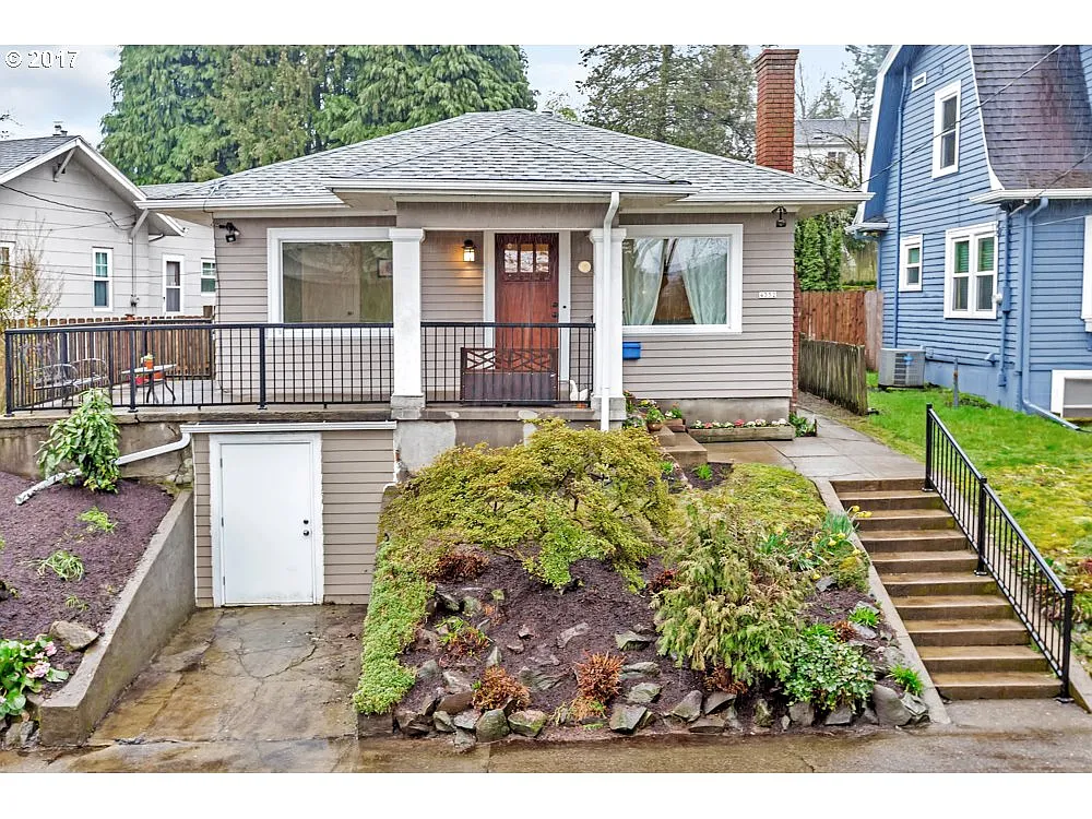 This beautifully remodeled Bungalow tucked away in the Laurelhurst neighborhood features a fully redone kitchen with concrete slab counter-tops, maple cabinets, gas range & SS appliances. Addition features: refinished hardwood floors, original imported tiles around fireplace, remodeled bathroom, wrap around porch with new railings, breakfast nook, updated plumbing, electrical & windows. ADU potential in basement addition!