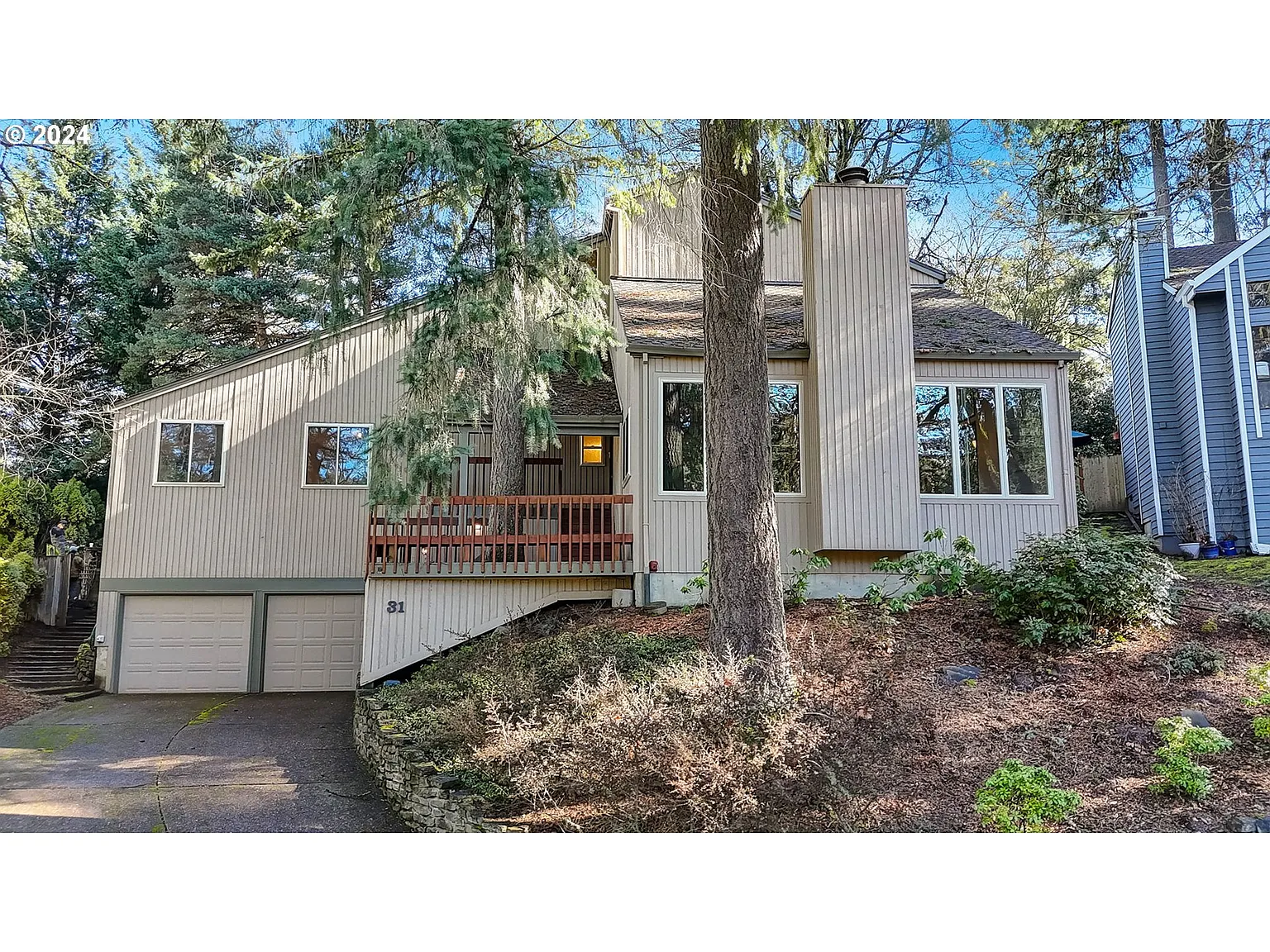 BOM! Stunning, NW contemporary nestled in the trees of coveted Mountain Park! This home offers privacy and tranquility with its oversized deck and large private lot. This stunning home was designed for entertaining, offering two separate living spaces with wood burning fireplaces, a formal dining room and soaring ceilings. The kitchen is a chefs delight featuring new gas cooktop, large island and granite countertops. The spacious primary boasts a walk-in closet and separate seating area. An additional bonus room with outside entrance makes this home perfect for guests and multi-generational living. Newer carpet and flooring, interior paint, windows and roof. Two car garage. Minutes to New Seasons, trails, shopping, parks and rec center!
