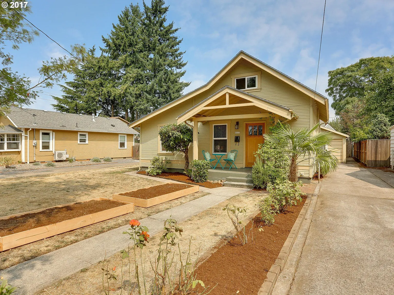 The Arbor Lodge sweet spot! Sunlit vintage charm, smart, efficient updates, big open kitchen, sunny yard w/raised beds + privacy, detached garage + lots of opportunity!