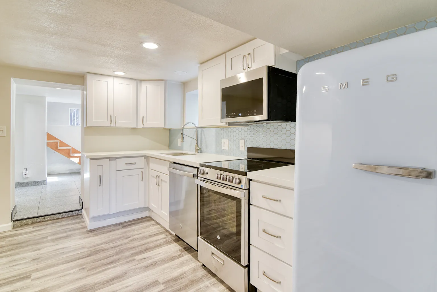 1-bedroom + bonus room daylight basement apartment is packed with premium upgrades and thoughtful touches. The fully remodeled kitchen features quartz countertops, a stainless steel sink with disposal, dishwasher, SMEG refrigerator, and stainless steel stove/oven. The spa-style bathroom includes a modern tile walk-in shower, Rejuvenation fixtures, and a sleek vanity. The bonus room offers flexible space for a home office, workout studio, or extra storage. Private in-unit laundry, secure keypad entry, and plenty of natural light throughout. Located just north of Mount Tabor Park in a walkable NE Portland neighborhood, with easy access to the MAX line and only 4 miles from downtown. Off-street parking included. Owner covers electric, internet, water, sewer, garbage, and recycling all included for a flat $150/month utility fee. First and last month's rent, plus security deposit, due at signing. A 12-month lease is preferred. No smoking on the property. No pets. Renter's insurance is required.