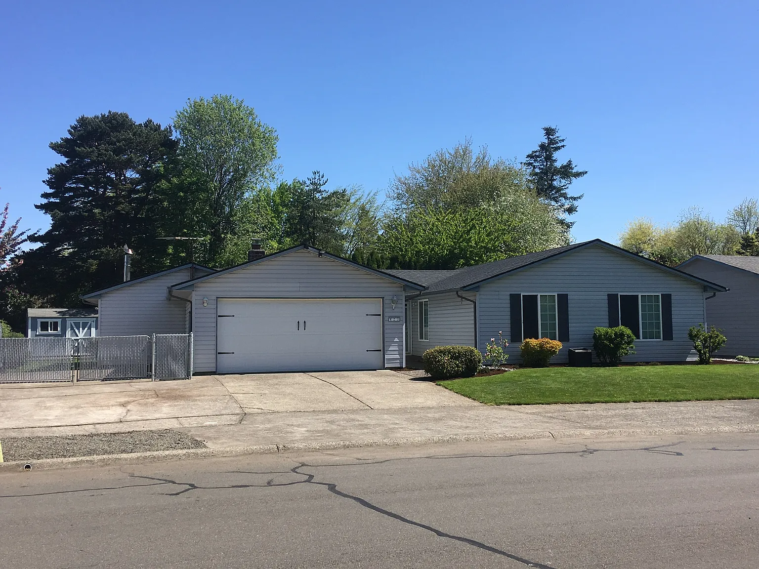 This 1-level home features a living room with fireplace, a large family room with vaulted ceiling, ceiling fan, sky lights, full bar, and a wood stove, laundry room and pantry.The master bedroom includes a 1/2 bath and walk in closet. The large fully fenced back yard contains a spacious patio with pergula, a Tuff Shed and garden boxes. The home has a double garage and RV/boat parking on the side. The home has new flooring and roof.