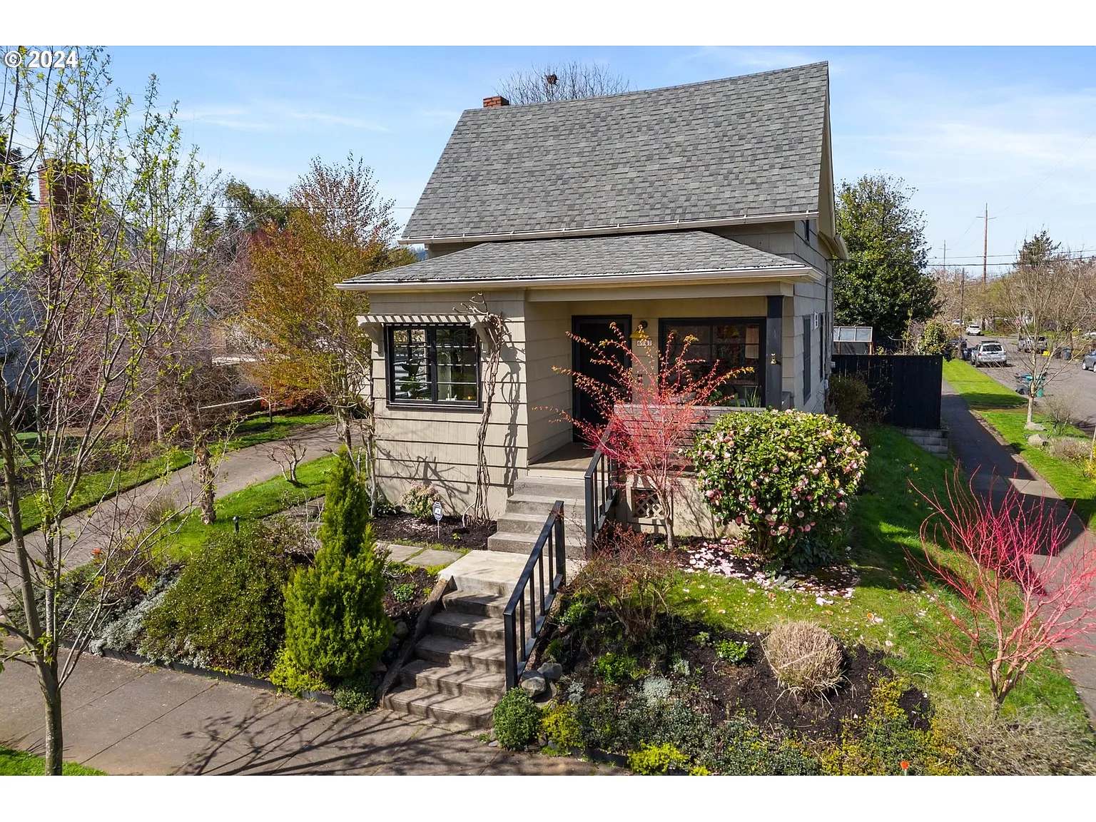 Original integrity abounds! Luxe renovation of this folk art inspired cottage, sitting proudly on a corner lot in University Park, one of the best kept secrets ~ a little slice of heaven with a small town feeling, just 20 minutes from the city's center. Bordered by St. Johns, with its iconic bridge and bustling downtown, Kenton, with its retro vibe, MAX station and public library and Arbor Lodge, with both New Seasons and Fred Meyer, a superb location! About a half a mile away, the preeminent University of Portland offers a wide selection of athletic and cultural events, plus the new River Campus where wildlife will serenade you as you stroll along the water. Sashay up the steps of your one of a kind, thoughtfully finished homestead and delight in her brilliant treasures. Pause on the porch perched up above the road. Bask in the bright open floor plan and soak up the sunlight beaming in all directions through scads of divided light windows. Graced with authentic wood floors, you'll be ready to entertain or hunker down in the warmth of your Jøtul gas stove in the spacious living room, feast with friends in the dining room and blanch, boil and braise in the gourmet kitchen of a renowned local chef, complete with a 5 burner gas stove! Oh, and do not miss the enclosed sunroom with French doors. Make your way up to the lofty lounge area, providing unusual privacy between the bedrooms. Woah, that double closet! Immerse yourself in the original clawfoot tub, relocated from the main floor during the remodel. Take in the jaw dropping private finished basement, with its full bath, ample space to play or study and large bedroom . Energy efficient mini splits provide comfortable heat and AC. Putter in the garage. Retreat to the oversized fenced backyard with park-like landscaping- an oasis with a greenhouse, critter resistant garden bed and lots of space for outdoor enthusiasts, perfect for farm to fork living, alfresco dining and blooms and blossoms galore! Offers due 4/9 @5PM [Home Energy Score = 5. HES Report at https://rpt.greenbuildingregistry.com/hes/OR10226756]