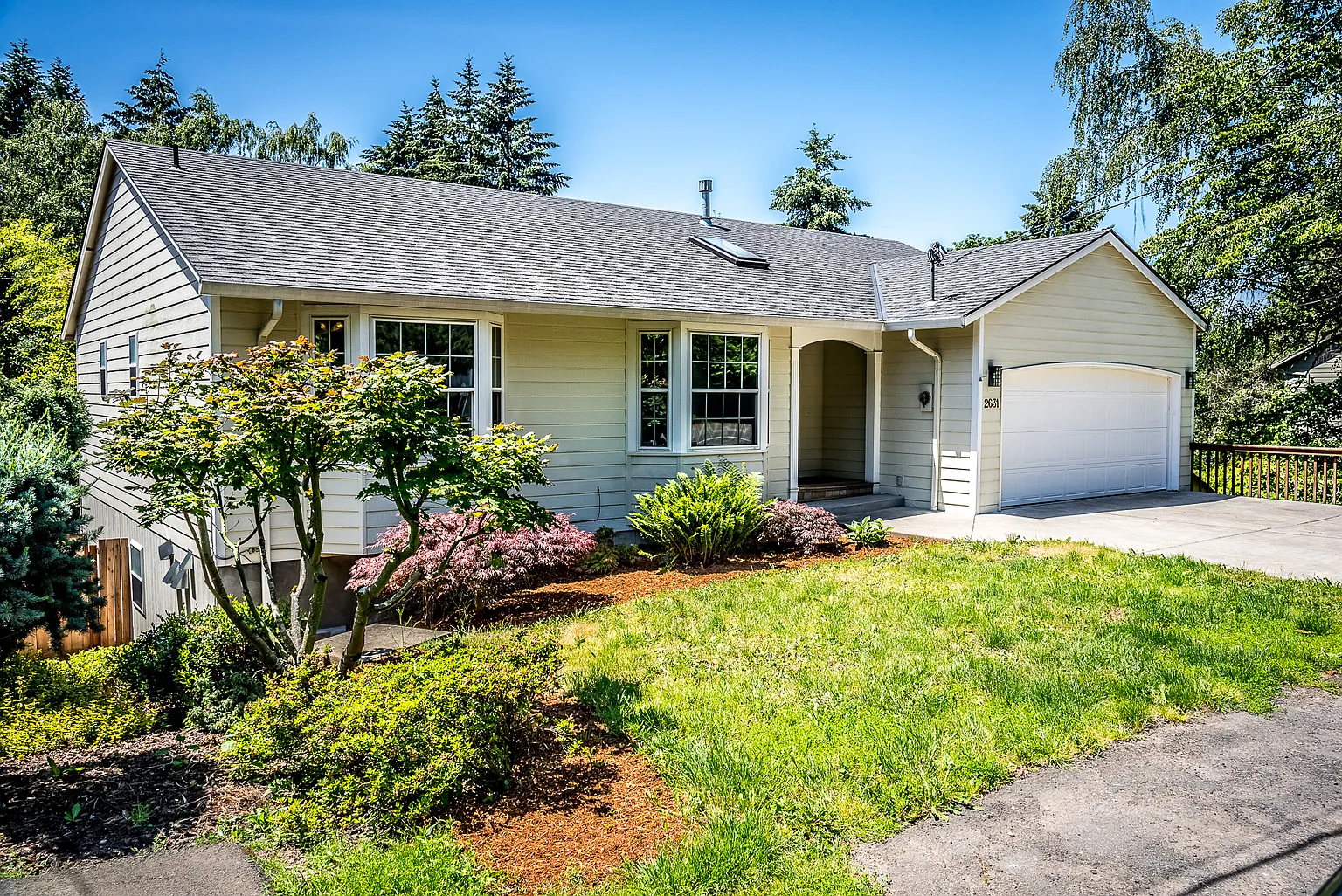Beautiful daylight ranch in desirable Rocky Butte neighborhood. Great possibility for multi family living. Natural light throughout. Stay comfortable with central air & gas fireplace. Kitchen includes gas range and newer SS appliances. 3 skylights and upgraded moulding. Covered deck and large back patio on LL. Downstairs there is a family room wired for surround sound. LL includes a bedroom w/full bath, laundry room & bonus room.