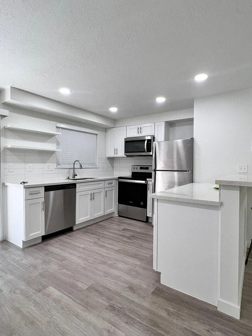 Beautifully renovated unit with new appliances in a charming neighborhood near transit, dining and shopping. Your little oasis near everything! The unit lives large for its size, with a large living-dining room area and open kitchen. Both bedrooms have abundant closet space, and are apart from the living space. Enter your private yard through the sliding door off the kitchen. This apartment has a modern look with a cozy feel. One year lease. No smoking in unit. Unit comes with 2 off street parking spaces. Pets require a $1000 deposit. Last months rent due at signing. Water & waste by owner, all else by tenant.