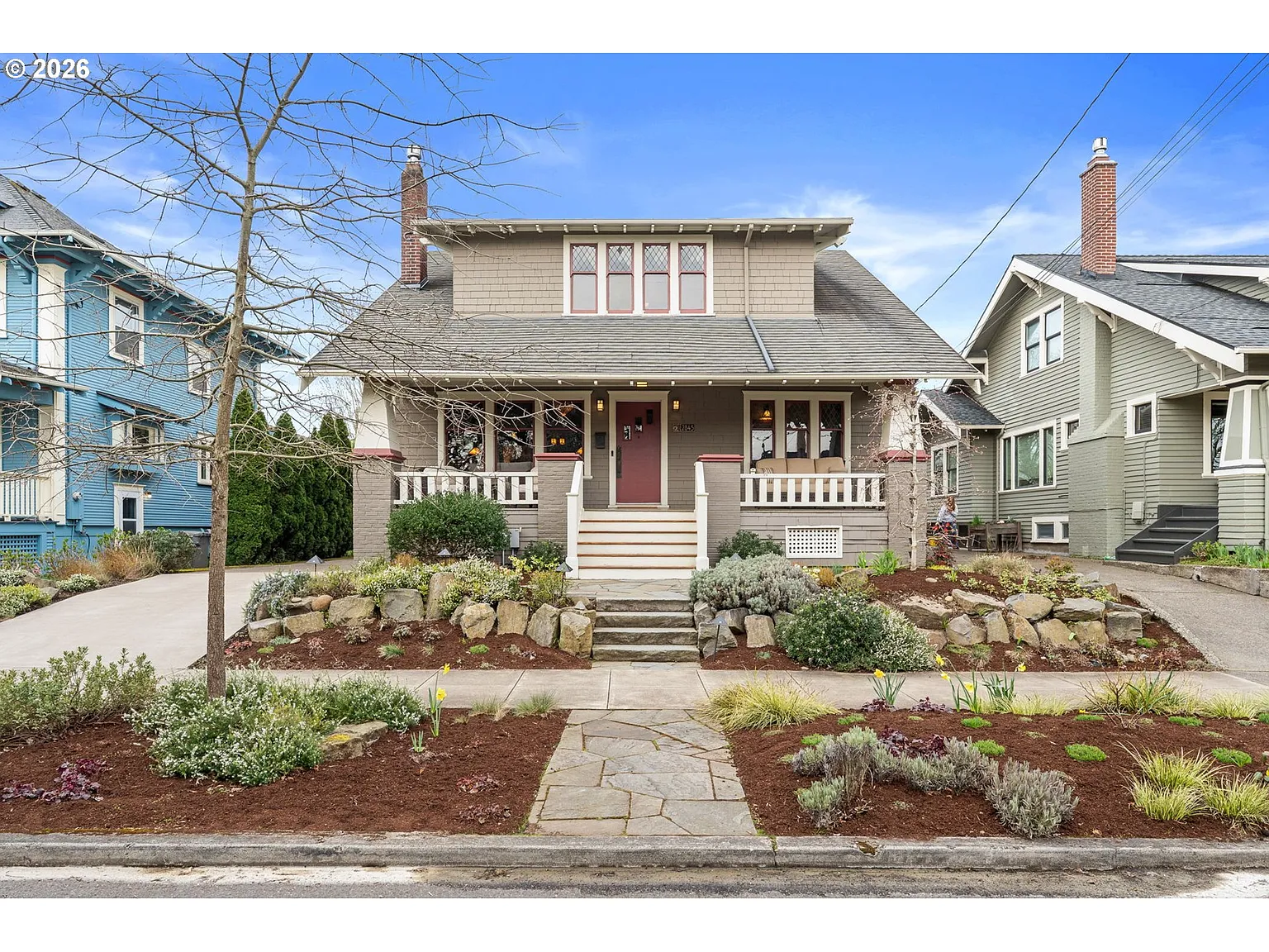This Rose City Craftsman is full of charm and classic character, featuring beautiful original details like leaded glass windows, built-ins, box beam ceilings, and warm hardwood floors. The spacious kitchen with stainless steel appliances makes everyday living and entertaining easy. The layout is especially appealing, with four bedrooms upstairs plus an additional bedroom and a den or office on the main level. The primary suite offers a relaxing retreat with a claw-foot tub, walk-in shower, and double sinks. Downstairs, you’ll find a basement with high ceilings, a cozy family room, and plenty of storage. Outside, the private backyard is perfect for unwinding or gathering with friends, as well as a detached garage. Located in the Alameda, Beaumont, and Grant school districts. Just a short walk to Fremont Street and a few minutes' drive to neighborhood favorites like Alberta Arts District and Grant Park, offering easy access to parks, groceries, cafes, restaurants, and local shops. [Home Energy Score = 4. HES Report at https://rpt.greenbuildingregistry.com/hes/OR10075416]