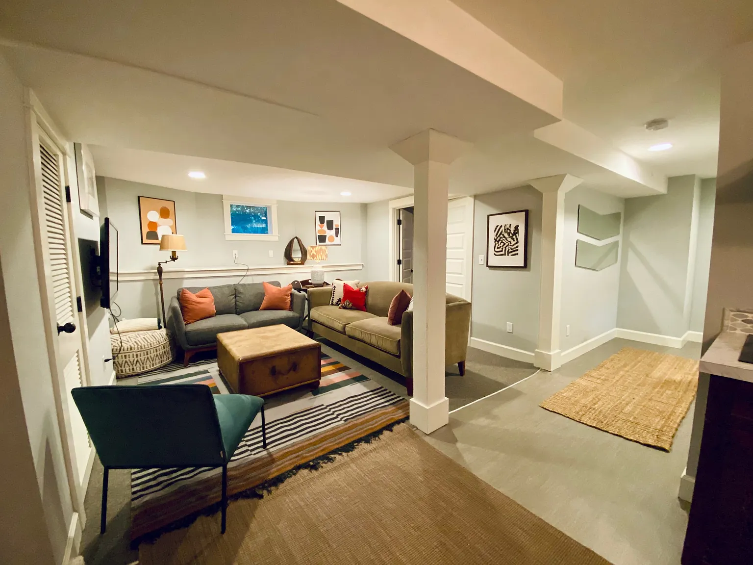 Fully furnished light-filled basement apartment, accessible through a private gated entrance that leads to a secure backyard with a cozy patio seating area. This beautifully furnished 2-bedroom apartment offers ample storage space and a full bath. The kitchen is thoughtfully equipped with practical amenities, including a three-burner electric stove, a full-size fridge, and a dishwasher. You'll also find a washer and dryer for your convenience during your stay. With its perfect blend of comfort and functionality, this apartment is an idyllic retreat for your time in Portland. All Utilities are included.