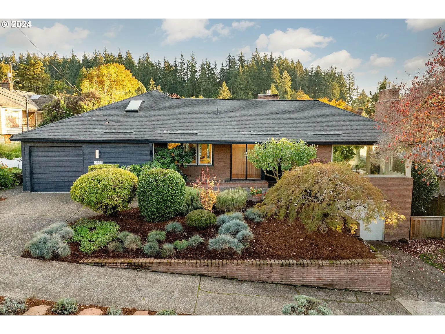 Welcome to Your Dream Home in Portland's coveted Mt. Tabor neighborhood. This beautifully updated custom-built mid-century modern residence offers the rare advantage of one-level living, complemented by a full garden level one-bedroom separate living quarters. Situated on a quiet dead-end street, allowing for peace and privacy, while still close to all the vibrant amenities the area has to offer. Upon entering, you’re greeted by a warm energy everyone notices—an inviting ambiance instantly makes you feel at home. The spacious rooms are filled with natural light thanks to oversized windows creating a bright and cheerful atmosphere. The grand living room features original built-in shelving and a cozy gas fireplace. Cook and entertain in the large kitchen equipped with new Bosch appliances, an oversized island, which flows seamlessly into the dining area. A wall of south-facing windows overlook the charming courtyard. The luxurious primary suite offers views of Mt. Tabor and private access to the back deck, making it the perfect spot to unwind in the hot tub while soaking in the natural surroundings. The spa-like en-suite serves as a true retreat, featuring modern finishes. On the lower level, you’ll find a fully updated living quarters with its own entrance. This versatile space can also be used as additional living space, as it connects to the upper level. It boasts a large bedroom with French doors leading to the garden, an open living area with a gas fireplace, a full kitchen, and a stylish bathroom with a shower—ideal for guests or rental income. Outside, discover your own backyard sanctuary, set on a 1/4 acre with multiple raised garden beds, and irrigation, as well as blueberry, raspberry, fig, and Japanese maple trees. The home also features upper and lower attached garages. Many more amenities and numerous mechanical and energy-efficient upgrades including owned solar panels enhancing functionality. Don’t miss your chance to own this remarkable property! [Home Energy Score = 4. HES Report at https://rpt.greenbuildingregistry.com/hes/OR10218818]