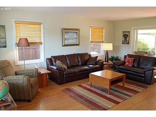 Classic mid-century modern ranch on oversize lot. This well loved home has only had two owners. Living room has fireplace flanked by bookcases and access to covered deck and outdoor living area. All rooms are large and light. Hardwood floors. Remodeled kitchen with marmoleum floors. Newer vinyl windows, newer gas furnace and landscaped yard with raised bed garden space. Near Trader Joe's, Reed College and all Woodstock ameneties.